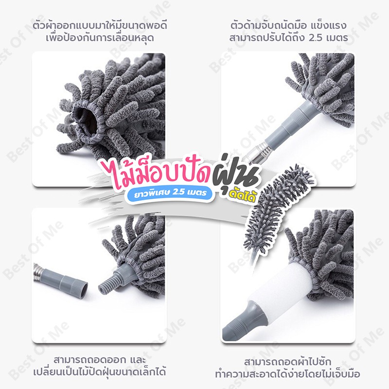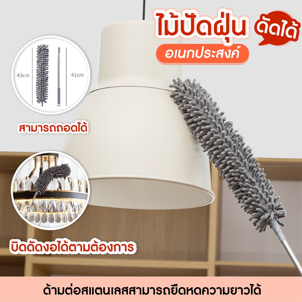 ไม้ปัดฝุ่น ไมโครไฟเบอร์ ดัดงอได้ ยืดความยาวได้ถึง 2.5 เมตร ช่วยดักจับฝุ่น เข้าถึงทุกซอกทุก มุม - 0587