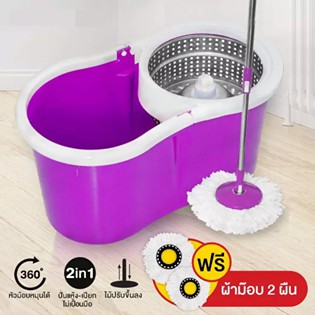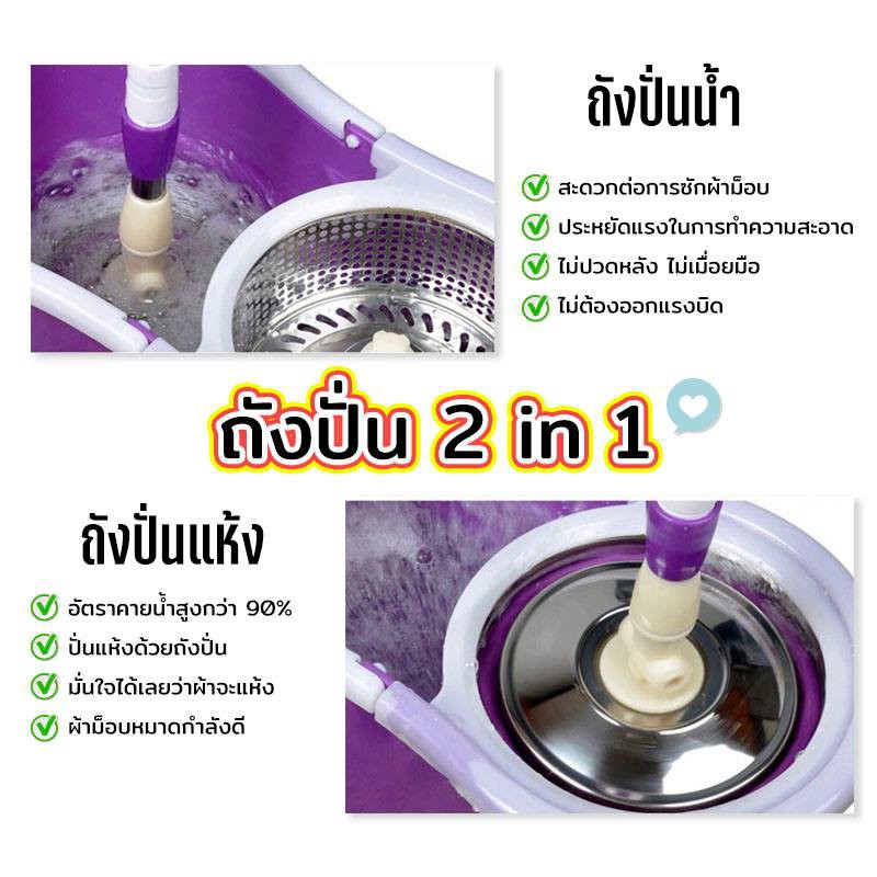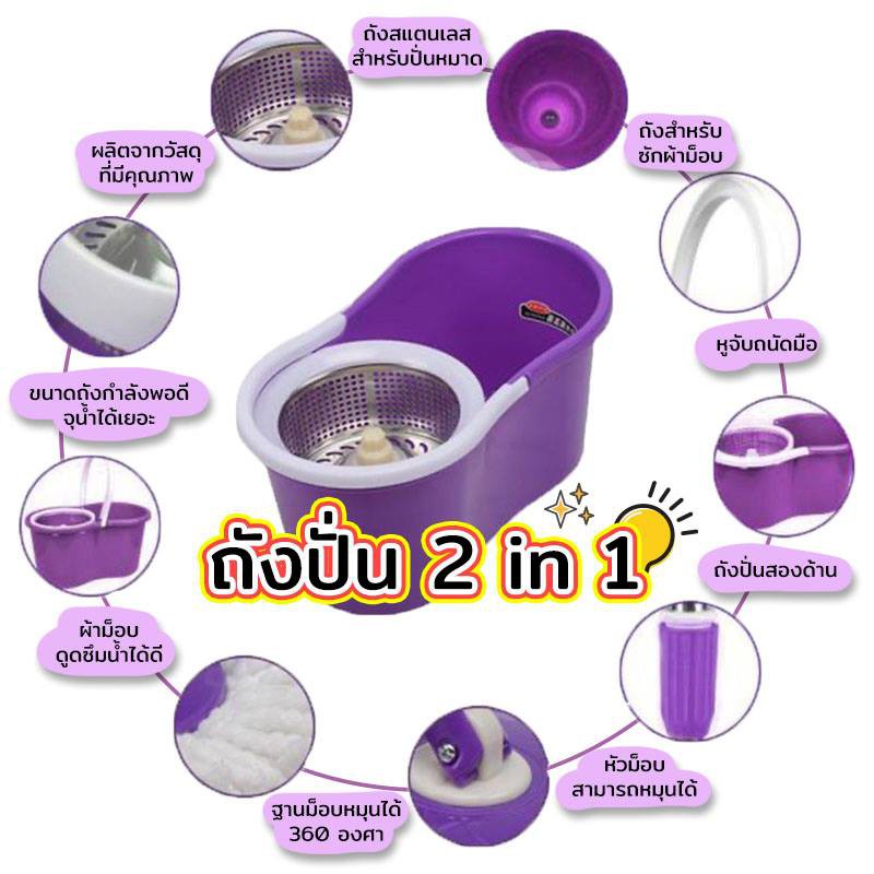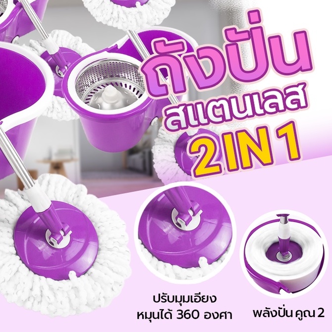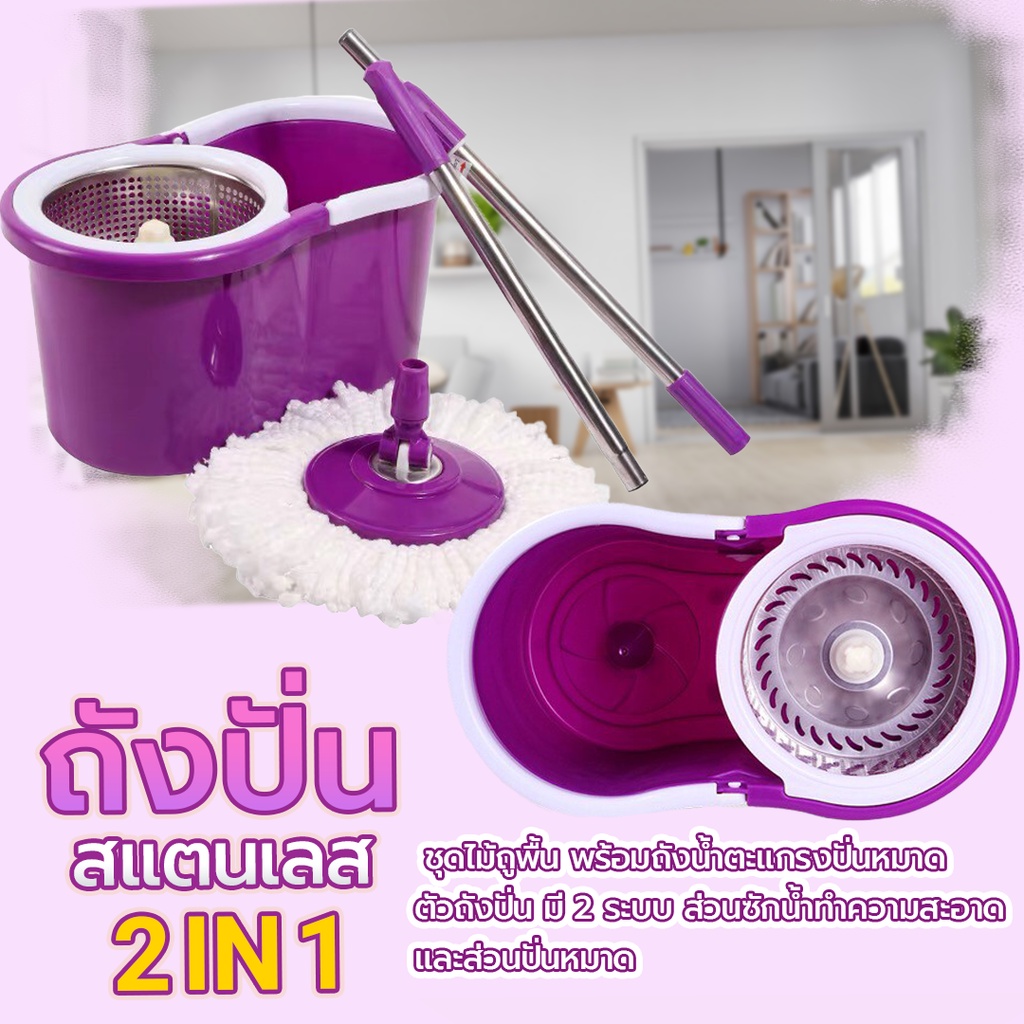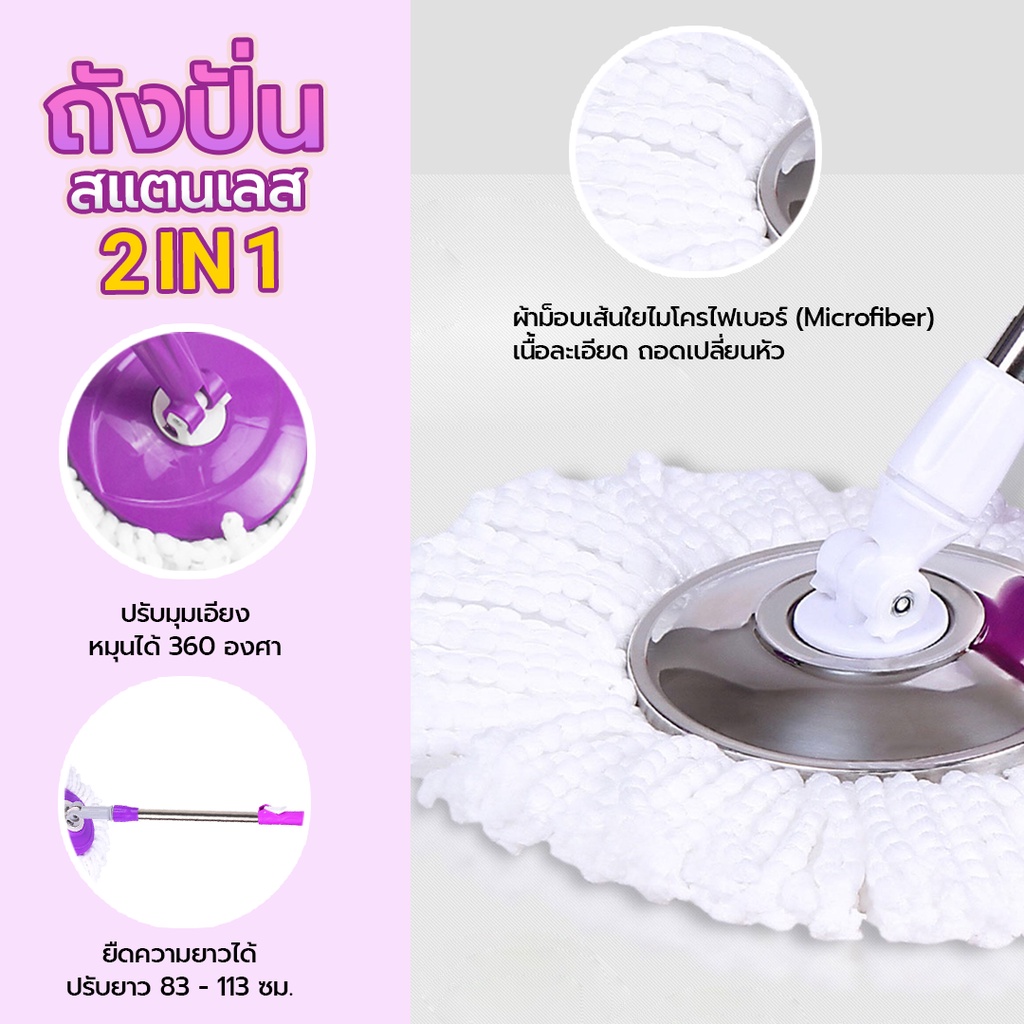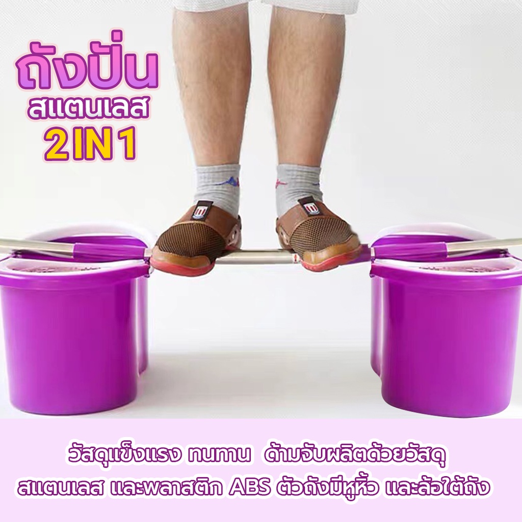 ชุดถังปั่นสแตนเลส ไม้ถูพื้น ถังปั่น 2 in 1 ไม้ม็อบ ไม้ม๊อบ ม็อบถูพื้น แถมฟรีผ้าม็อบ 2 ผืน - 0247