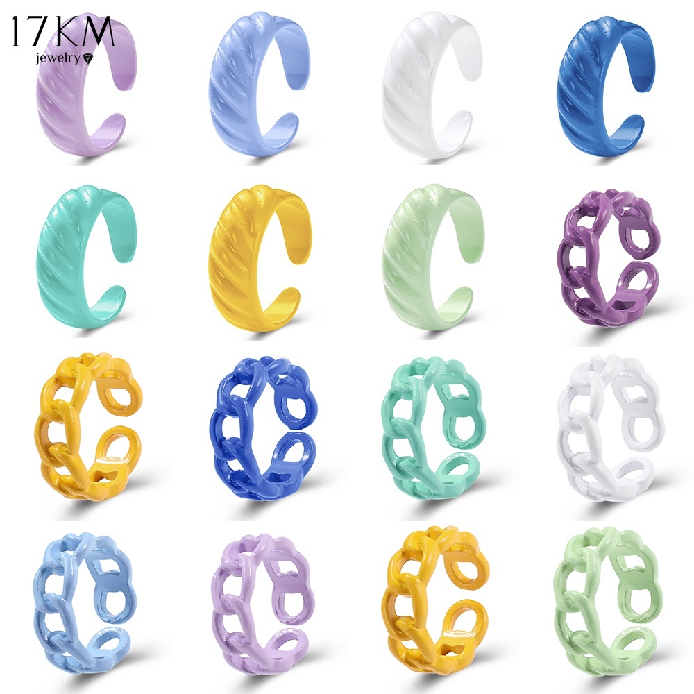 17KM เครื่องประดับ แหวนโซ่ สีลูกกวาด สามารถปรับได้ สำหรับผู้หญิง