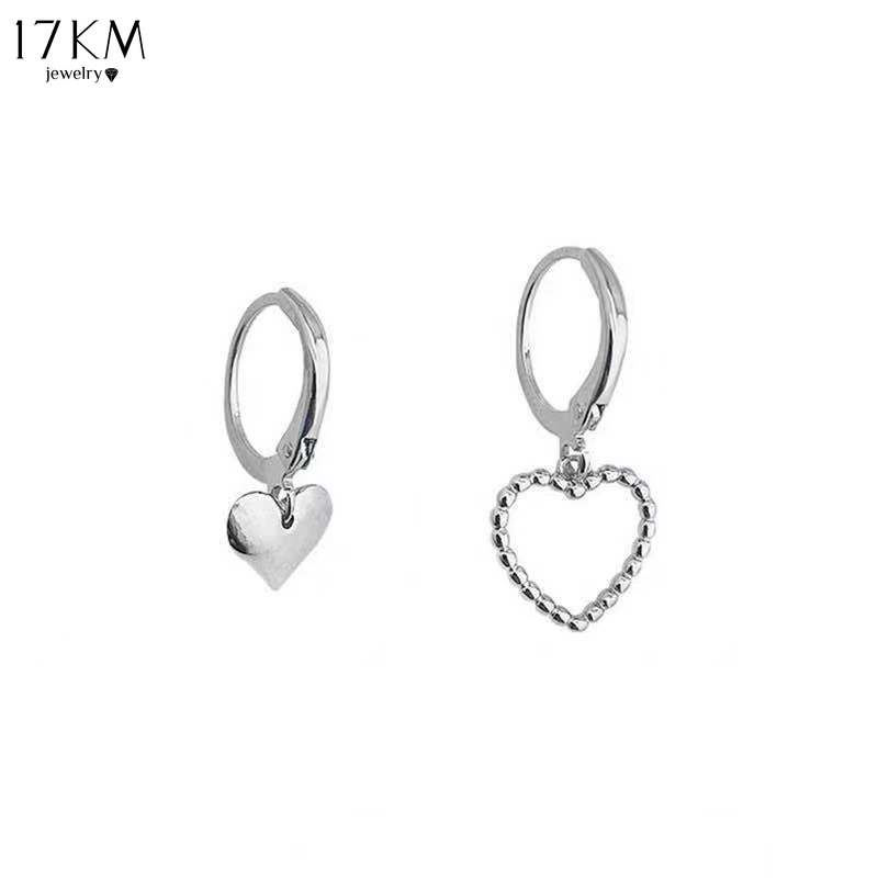 17KM ต่างหูห่วง แต่งจี้รูปหัวใจ 2 ชิ้น/ชุด