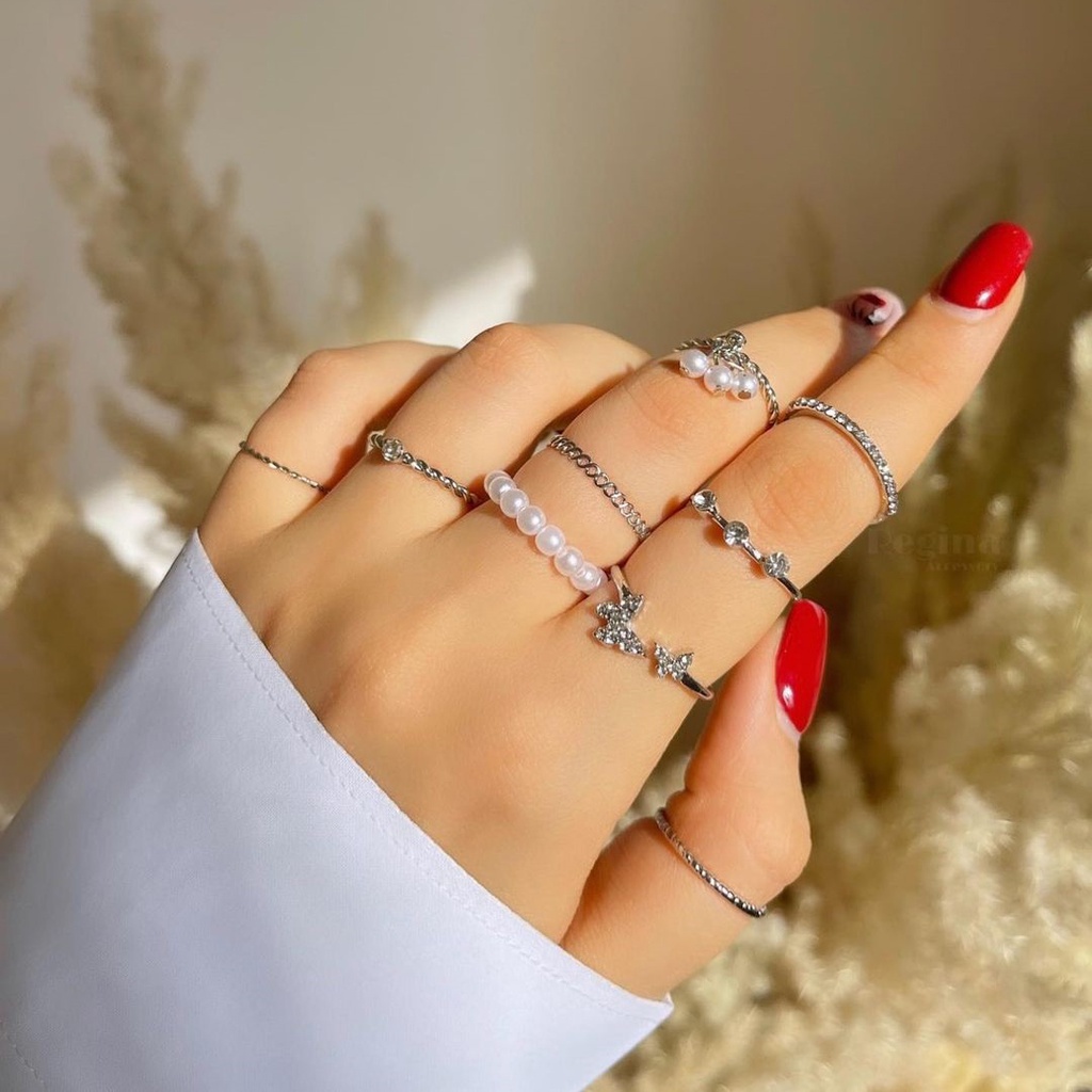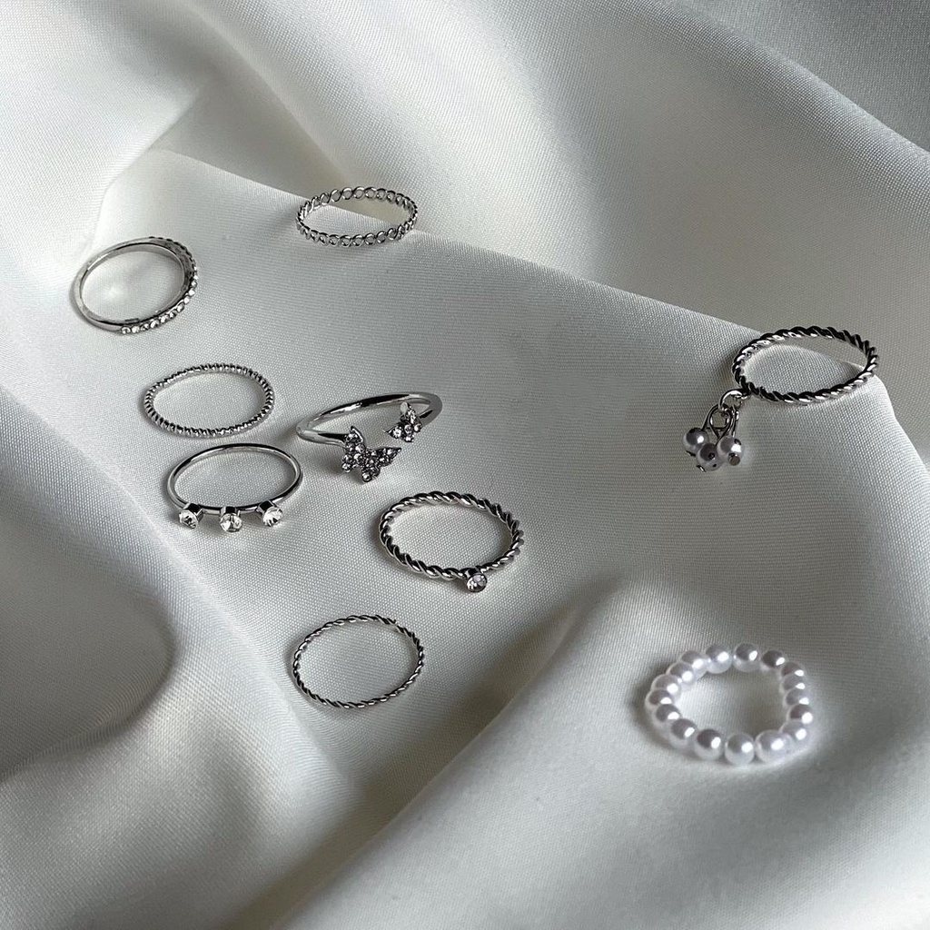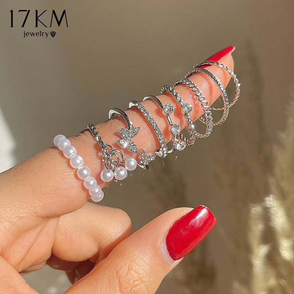 17 กม. 9 ชิ้น / เซต แหวนมุกคริสตัล กลวง บาง แหวน สําหรับผู้หญิง เครื่องประดับ อุปกรณ์