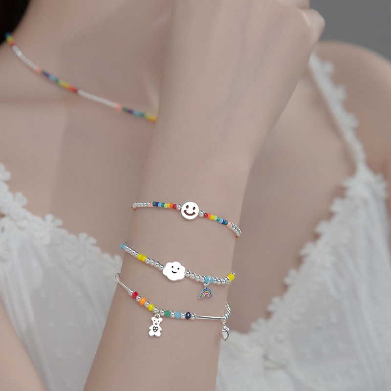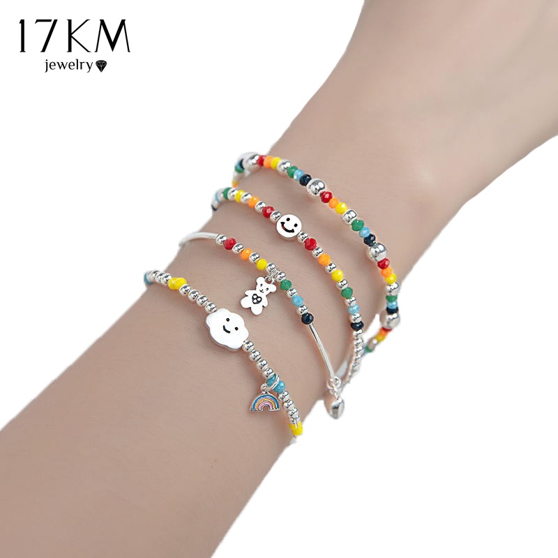 17KM สร้อยข้อมือ ประดับลูกปัด รูปหัวใจ และหมี ก้อนเมฆยิ้ม ขนาด 17 กม. สีสันสดใส เครื่องประดับ สําหรับผู้หญิง