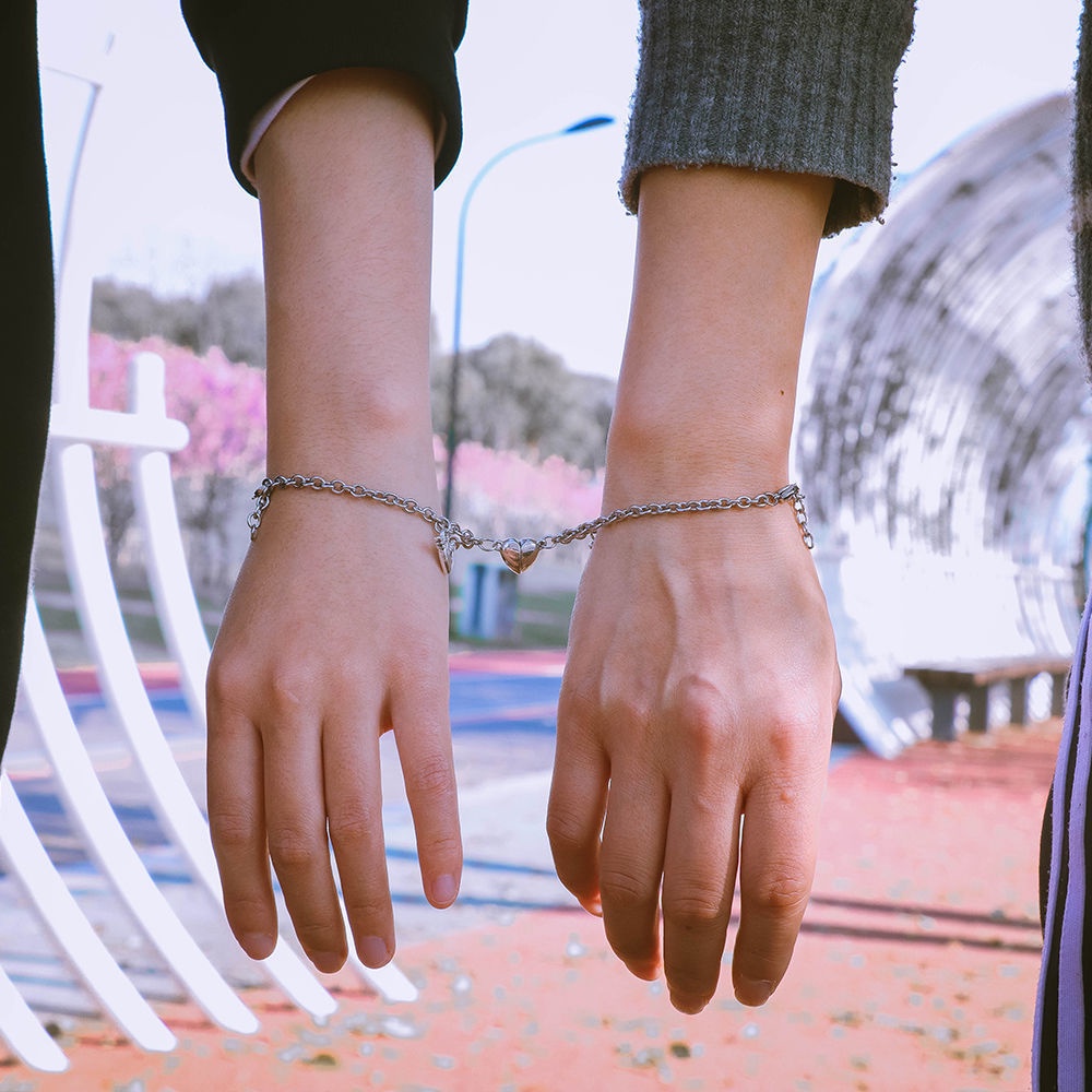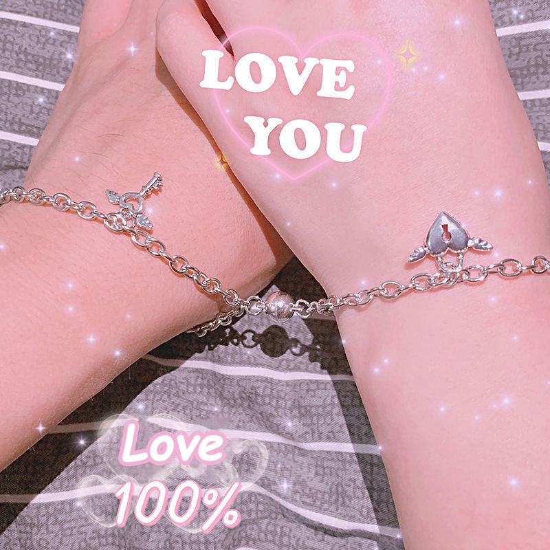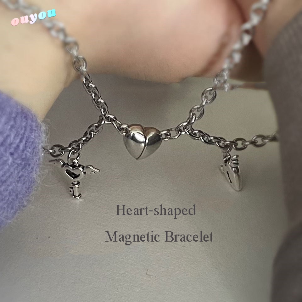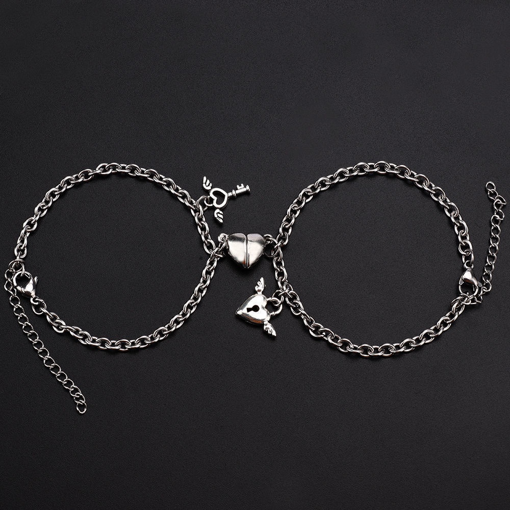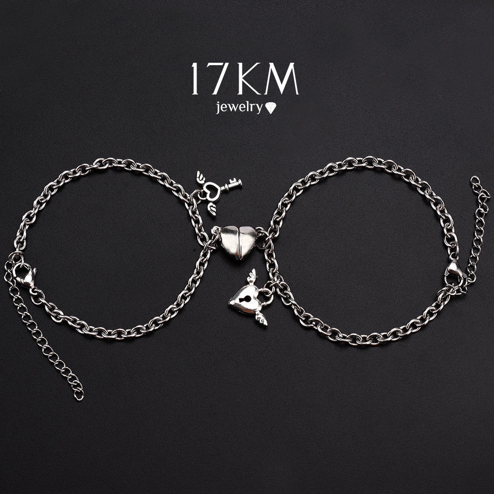17 กม. วินเทจ หัวใจ แม่เหล็ก จ ี้ สร้อยข้อมือ ล็อค พวงกุญแจ เงิน สร้อยข้อมือคู่ เครื่องประดับ อุปกรณ์เสริม