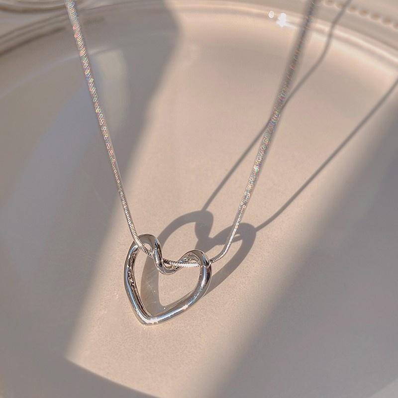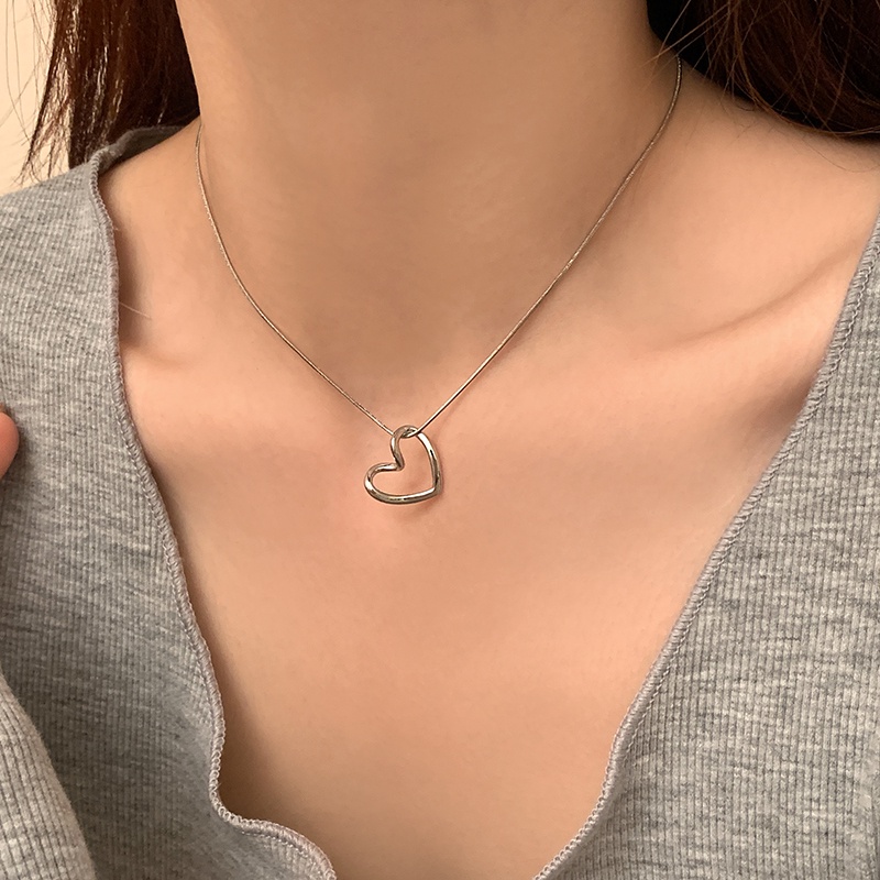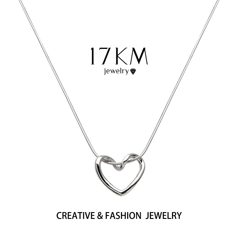 17KM สร้อยคอจี้หัวใจ เรียบง่าย สําหรับผู้หญิง โซ่เงิน โช้คเกอร์ เครื่องประดับแฟชั่น