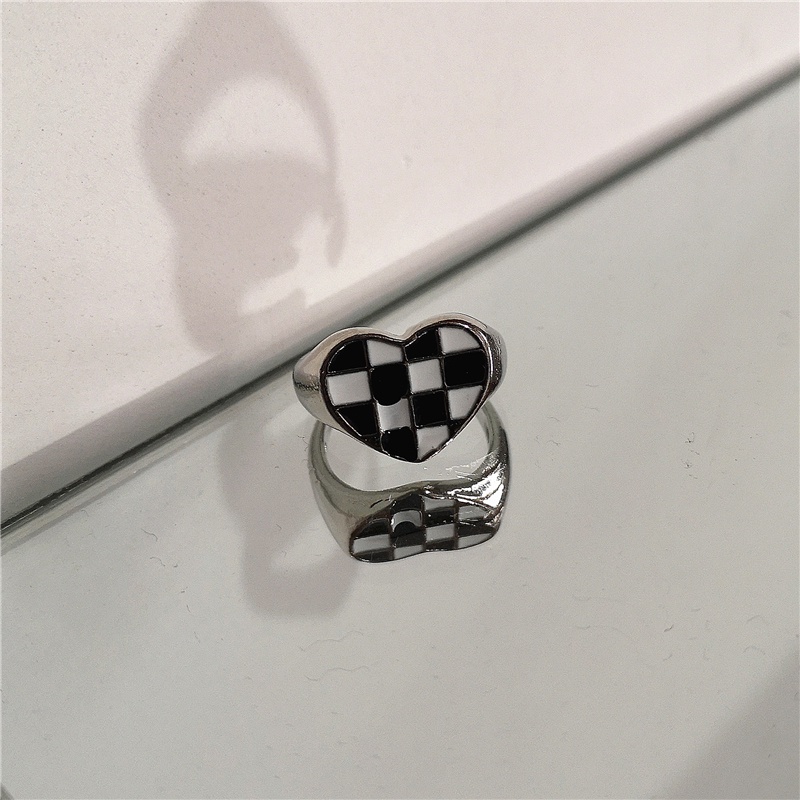 17KM Y2K หวาน เย็น สีชมพู คริสตัล สีเงิน ชุดแหวน สําหรับผู้หญิง กระดานหมากรุก หัวใจ มุก แหวน เครื่องประดับ
