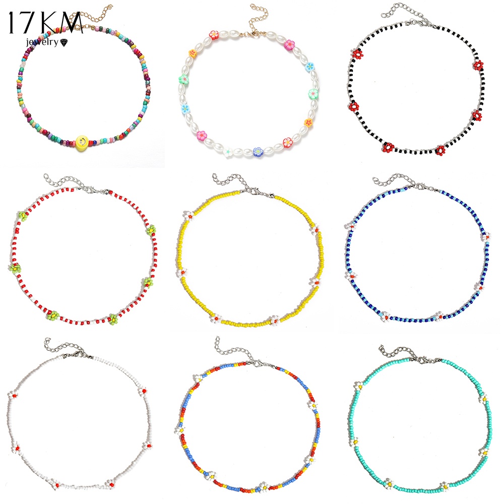 17KM เครื่องประดับสร้อยคอโชคเกอร์ลูกปัดมุกดอกไม้หลายชั้นสไตล์เกาหลีสําหรับผู้หญิง