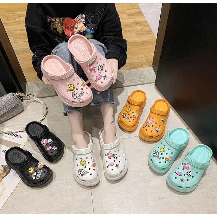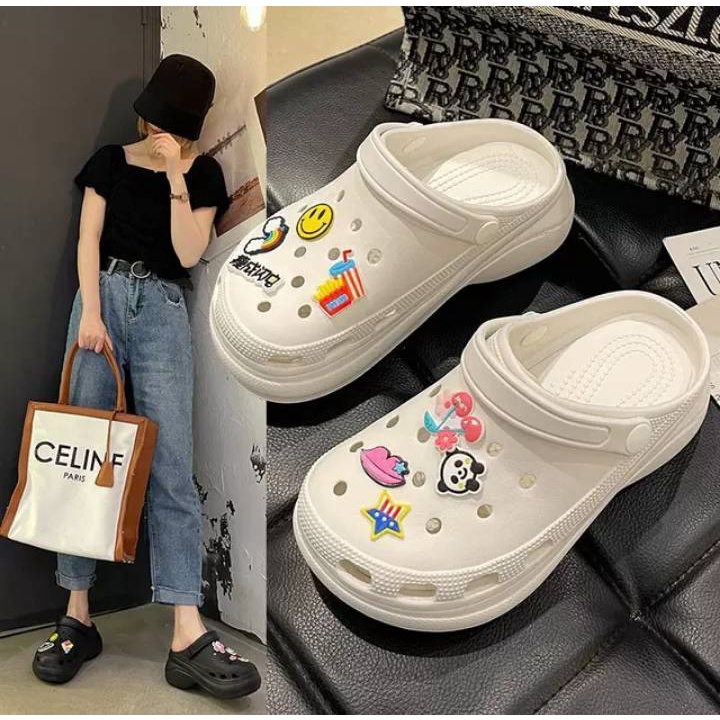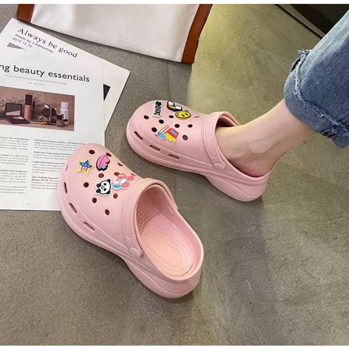 FBJ(ลูกค้าใหม่1บาท)12.12 เที่ยงคืน 121.- [กรอกโค้ด TDQGY ลด15%] รองเท้าแพลตฟอร์มเส้นสูงสำหรับผู้หญิง(พร้อมตัวการ์ตูนติด)