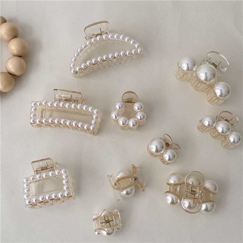 GJH-กิ๊บติดผมมุกกริตเตอร์เหลี่ยมอะคริลิคสไตล์เกาหลีใหม่