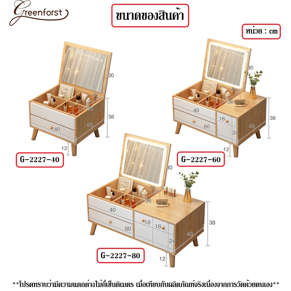 Greenforst โต๊ะแต่งหน้า ทรงเตี้ย สามารถเป็นโต๊ะเขียนหนังสือได้ รุ่น G-2229/G-2227
