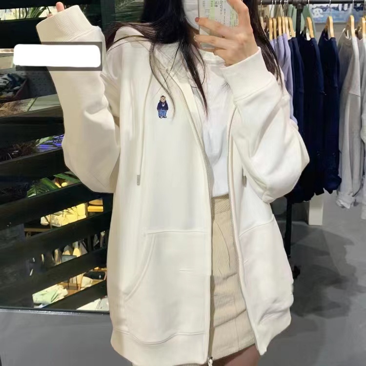 ใหม่ เสื้อกันหนาวมีฮู้ดผู้หญิง เสื้อคลุมแขนยาว มีซิป ผ้าสำลี เนื้อผ้านิ่ม ลายหมี น่ารัก สไตส์วัยรุ่นเกาหลี