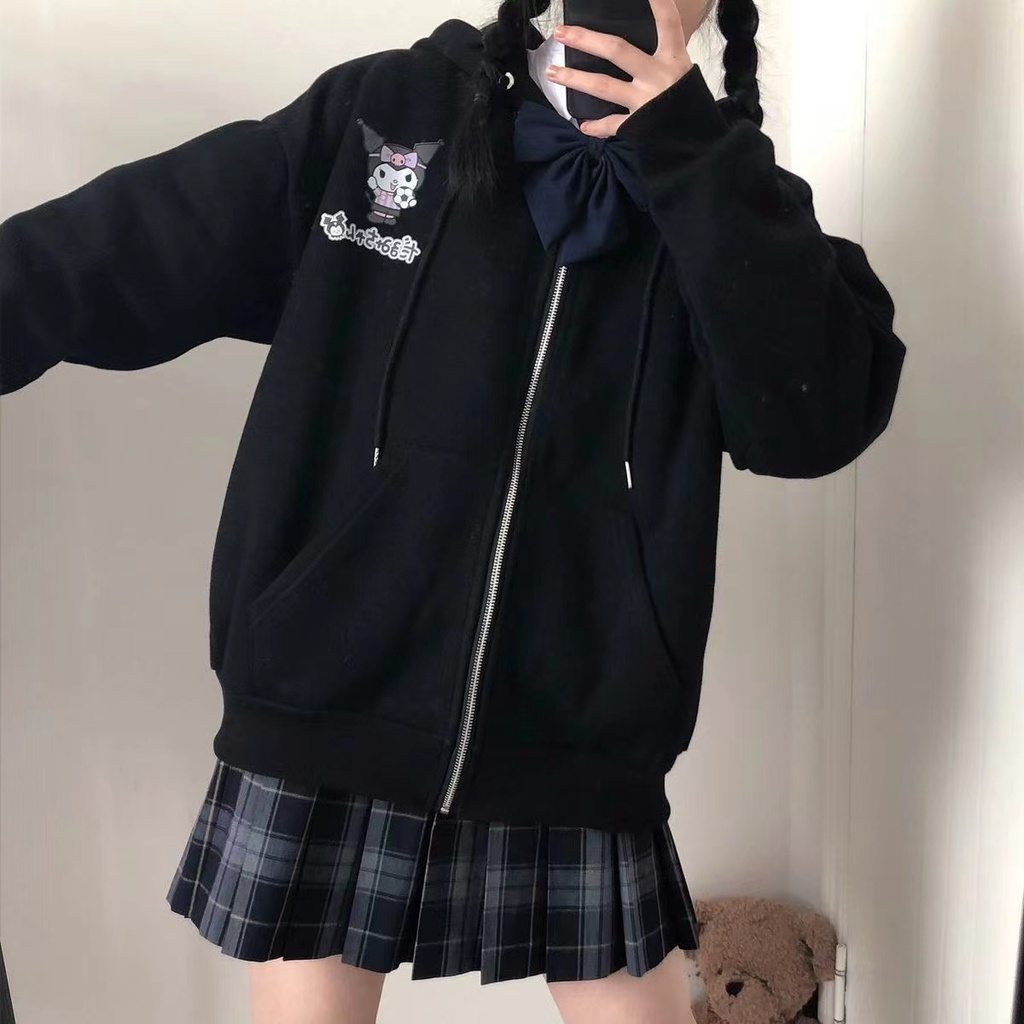 เสื้อกันหนาว คลุมแขนยาว มีฮู้ด มีซิป ผ้าสำลี เนื้อผ้านิ่ม ลายการ์ตูน น่ารัก สไตส์วัยรุ่นเกาหลี