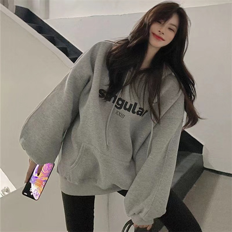เสื้อกันหนาวมีฮู้ด เสื้อแขนยาว ผ้าสำลี เนื้อผ้าหนานิ่ม ทรงหลวม สวมใส่สบาย สไตส์วัยรุ่นเกาหลี