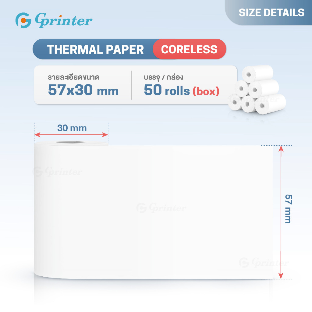 Gprinter กระดาษสติ๊กเกอร์ 57x30 mm Sticker สติกเกอร์ความร้อน เว้นขอบ ไม่ใช้หมึก กันน้ำ