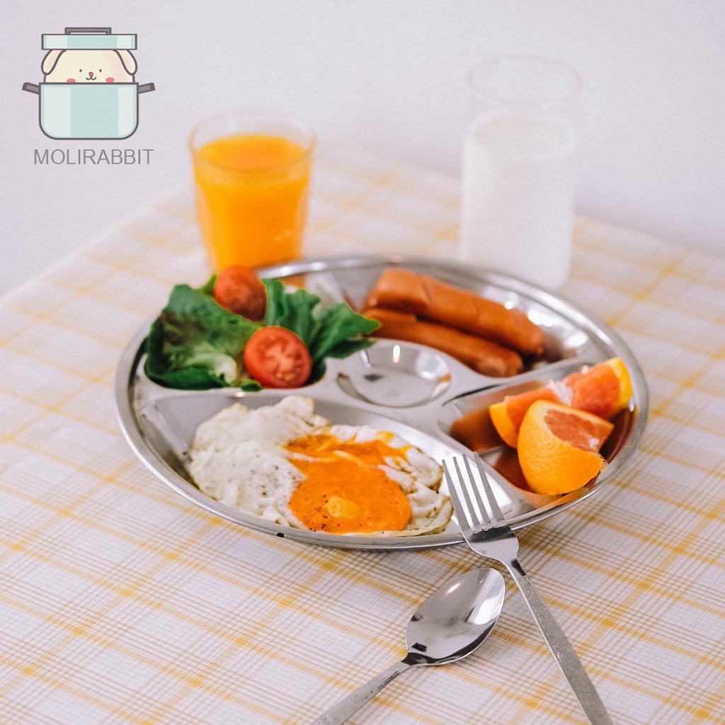 ถาดหลุมสแตนเลส (แบบหนา) ถาดข้าว 4-6 ช่อง ถาดแบ่ง มี 3 ขนาด 28/30/32 cm