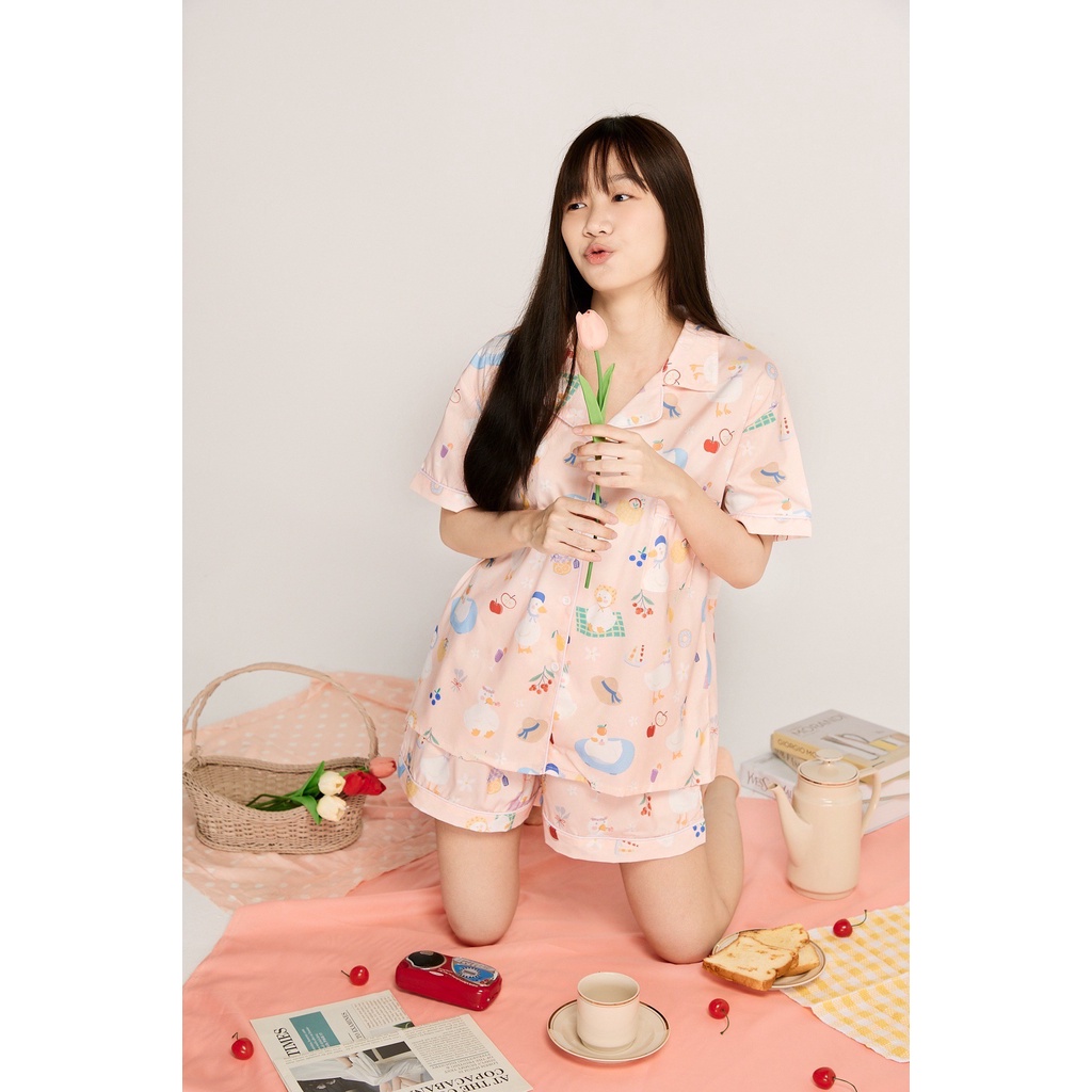 ชุดนอน 19th Collection 'Ducky in the garden' สี Pale peach