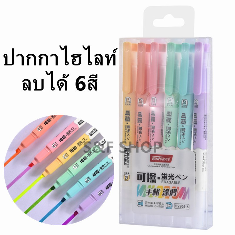 พร้อมส่ง ปากกาไฮไลท์ ปากกาไฮไลท์แบบลบได้ 6สี TENFON รุ่น H-2306-6 สีชัดแบบสว่าง แบบแพ็ค(ราคาต่อชุด) #ปากกาเน้นข้อความ