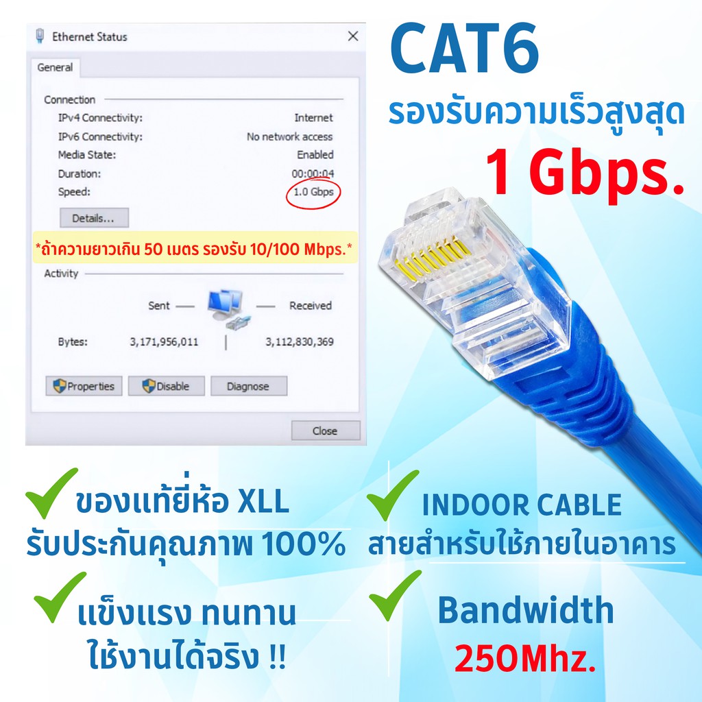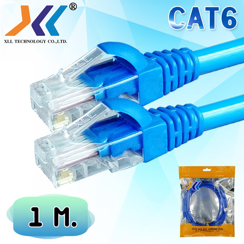 XLL สายแลน CAT6 เข้าหัวสำเร็จรูป สีฟ้า/น้ำเงิน ใช้ภายใน 1เมตร