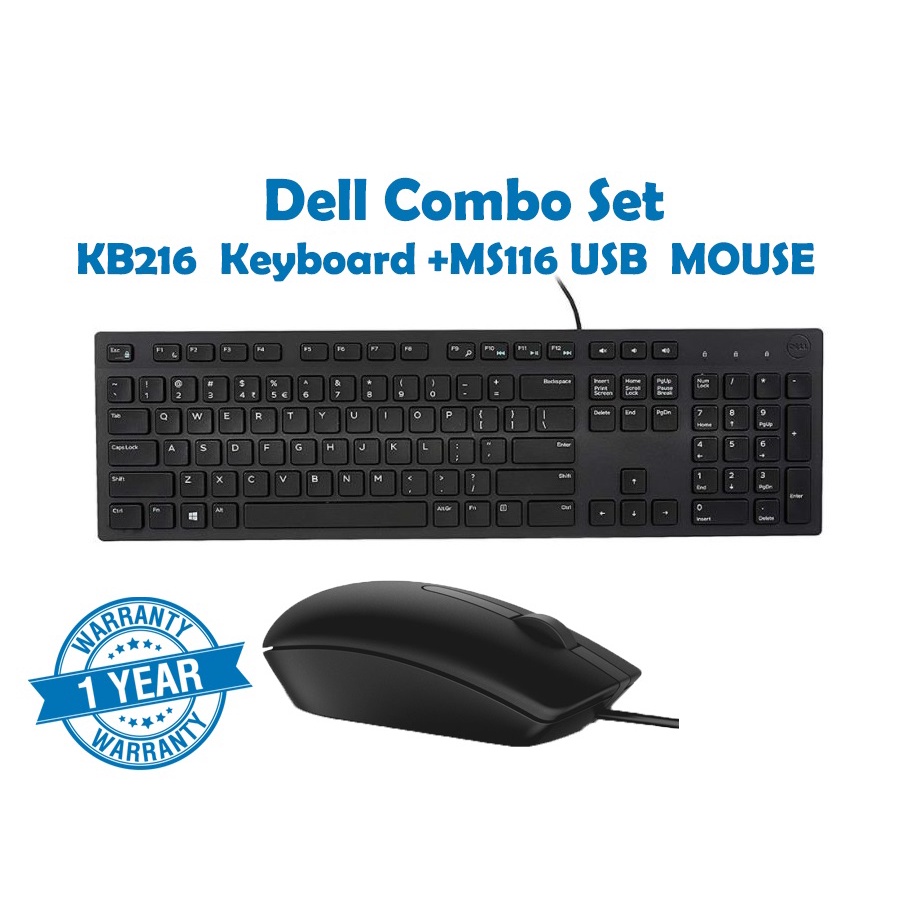 Dell Combo set KB216 , k203 Multimedia Keyboard + Dell MS116 USB DELL OPTICAL MOUSEของแท้ รับประกันศูนย์ 1ปี