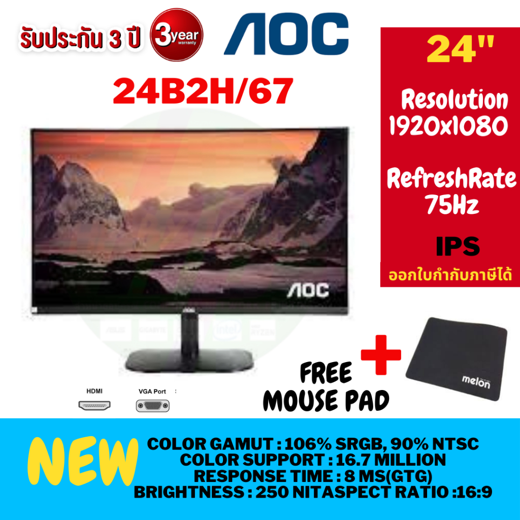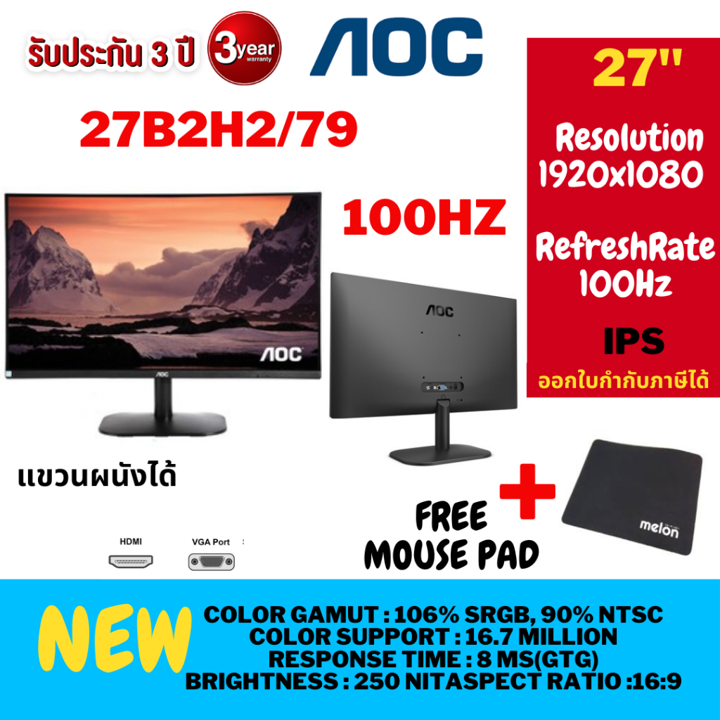 ⚡️🔥ขายดีส่งไว🔥⚡️MONITOR (จอมอนิเตอร์) AOC 27B36H, /120HZ