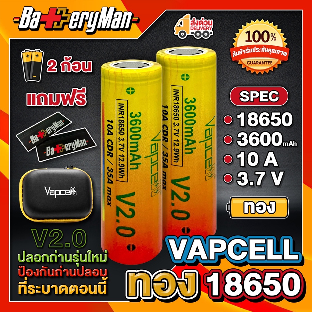 (มี มอก.)( เเท้100%)(2ก้อน) ถ่านชาร์จ 18650 ขายดีที่สุดของร้าน (ร้านbatteryman)