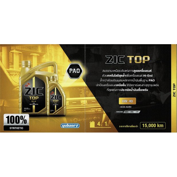●น้ำมันปี2024/API:SP● 0W-40 PAO ZIC TOP |แกลลอน 4 ลิตร| เครื่องเบนซิน-ดีเซล สังเคราะห์แท้ 100% ระยะ 15,000 KM.