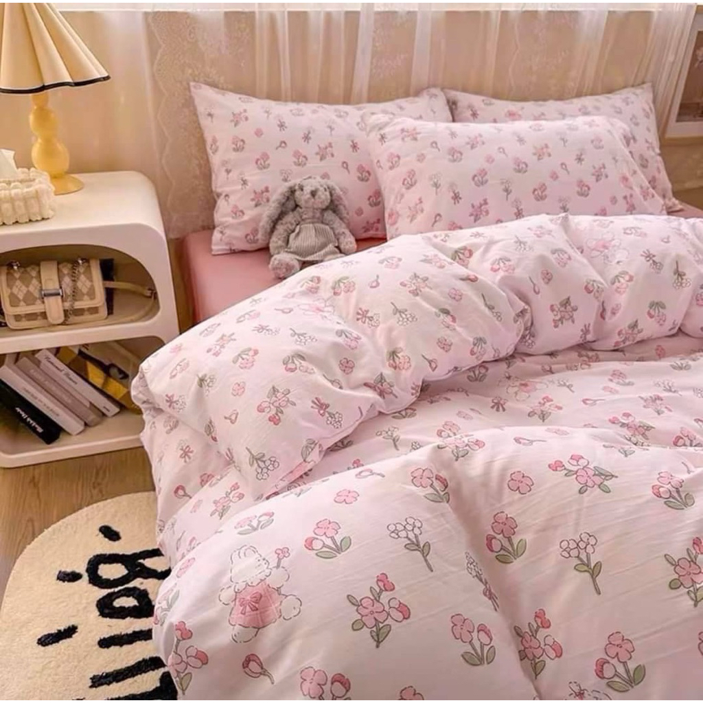 ชุดผ้าปูที่นอน พร้อมผ้านว ม โทนชมพู🌸 ครบเซ็ต