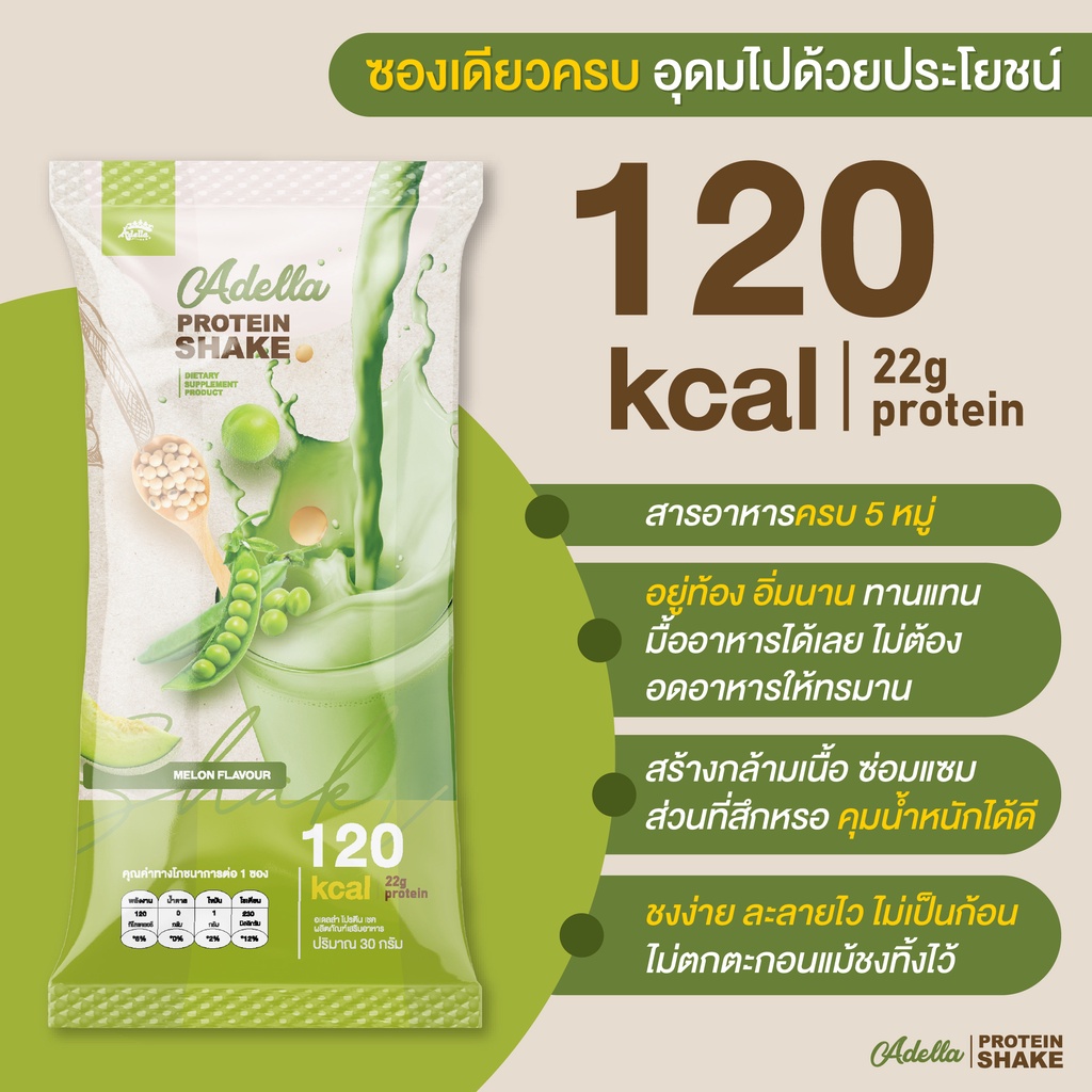 [ADELLA] โปรตีนรสเมล่อน 3แถม2 ซื้อโปรตีนเชค 3 **แถมฟรี❗️โปรตีนเชค 1 & แก้วเชค 1(คละสีแก้ว)