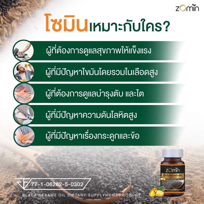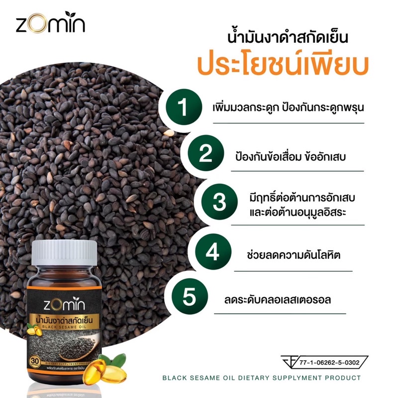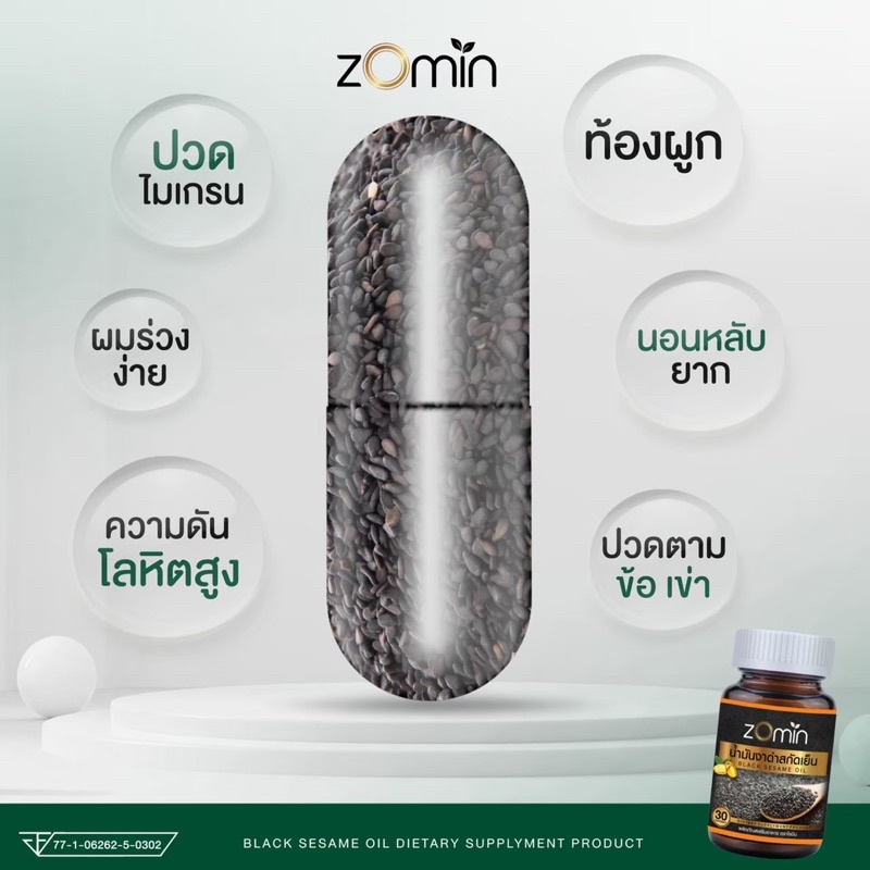 zomin โซมิน ส่งฟรี น้ำมันงาดำสกัดเย็น 100%‼️ช่วยป้องกัน ฟื้นฟู บรรเทาและบำรุงสุขภาพ แก้ปวดข้อเข่าเสื่อม‼️