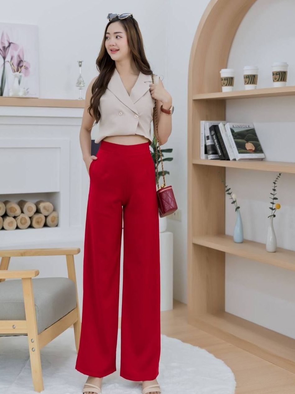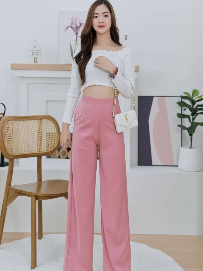 กางเกงกระบอกใหญ่ S-3XL ผ้าฮานาโกะ