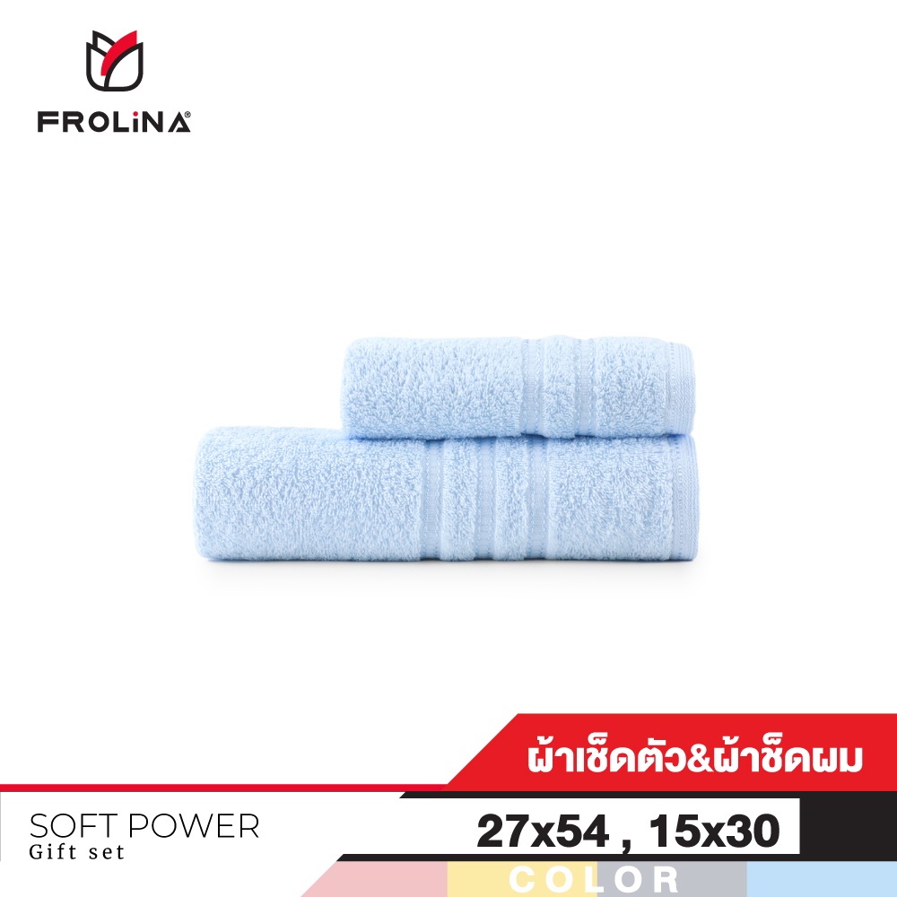 Frolina Gift Set Soft Power ผ้าขนหนูเช็ดตัวและเช็ดผม ขนาด 27x54+15x30 นิ้ว