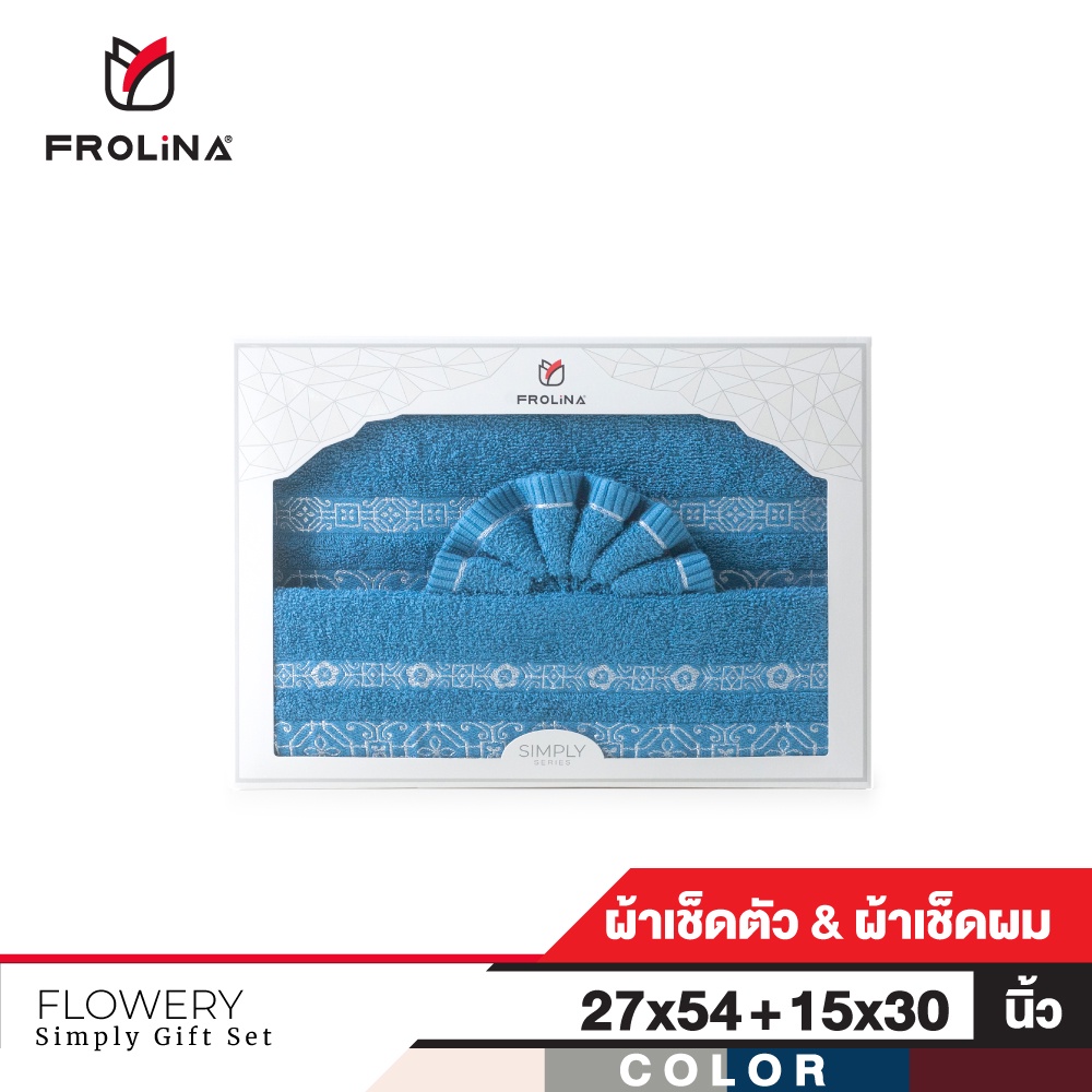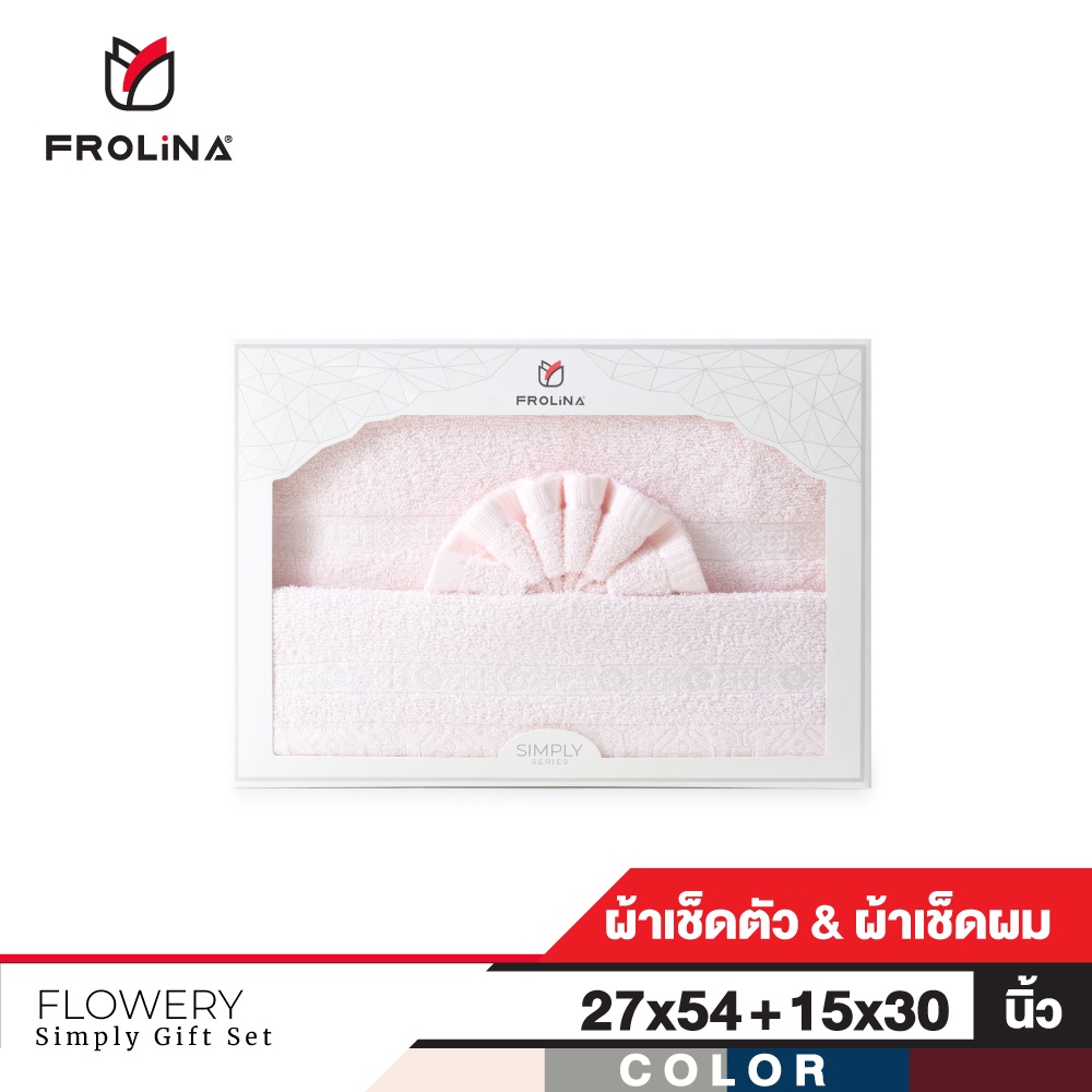 Frolina Gift Set Flowery เซ็ตของขวัญ ชุดผ้าขนหนู ผ้าขนหนูเช็ดตัวและเช็ดผม ขนาด 27x54+15x30 นิ้ว