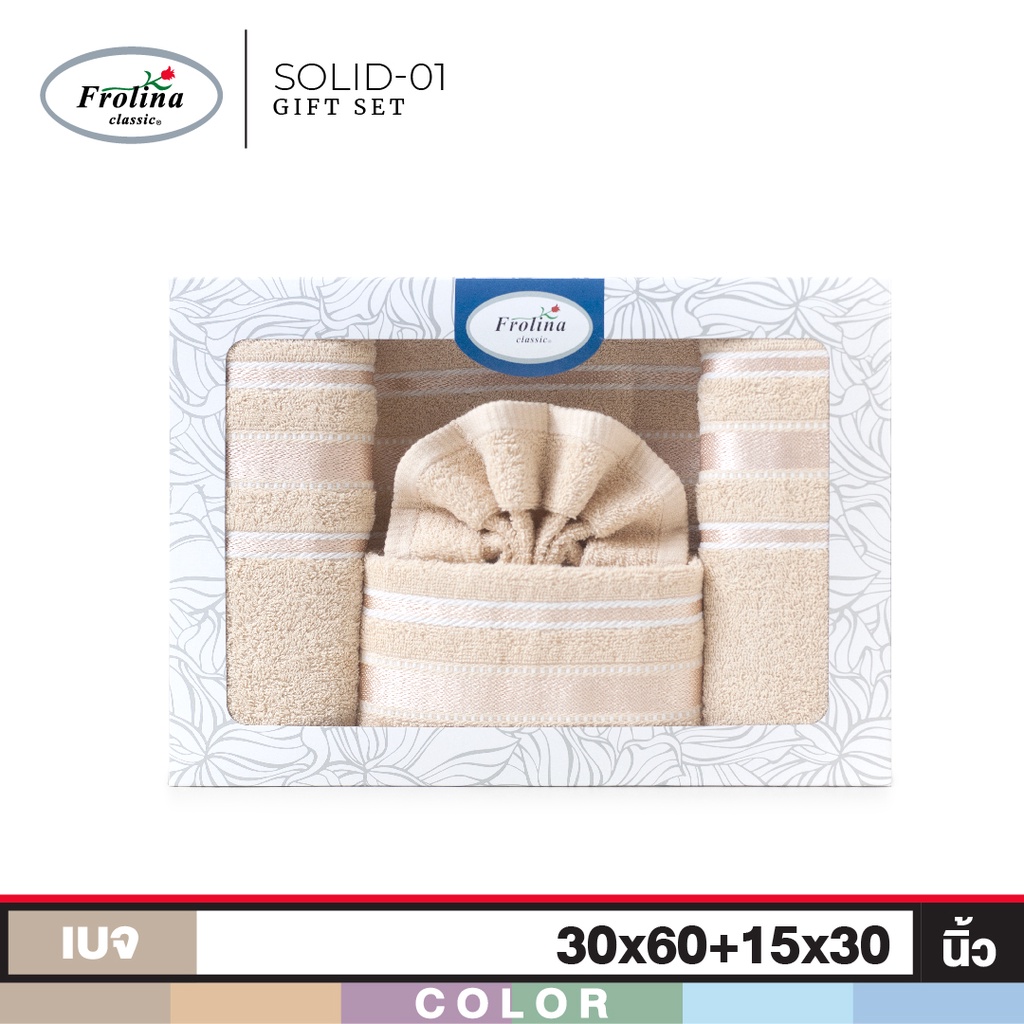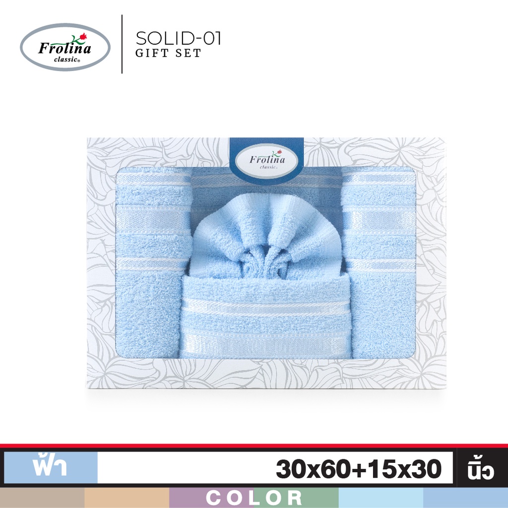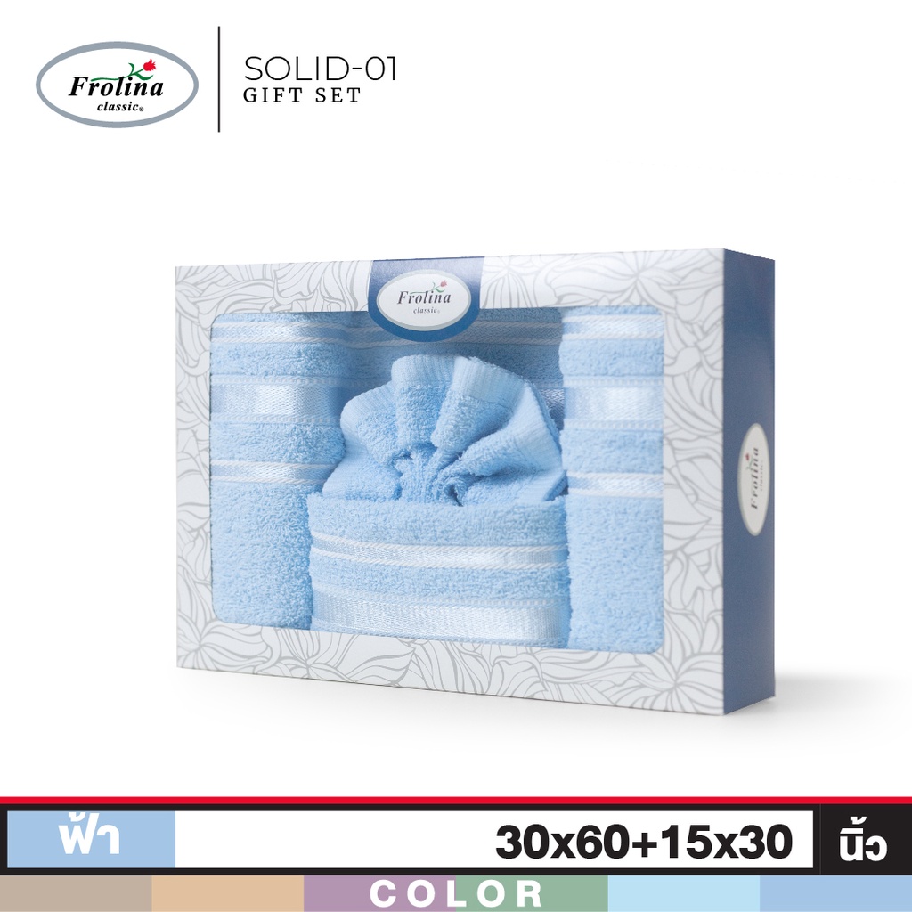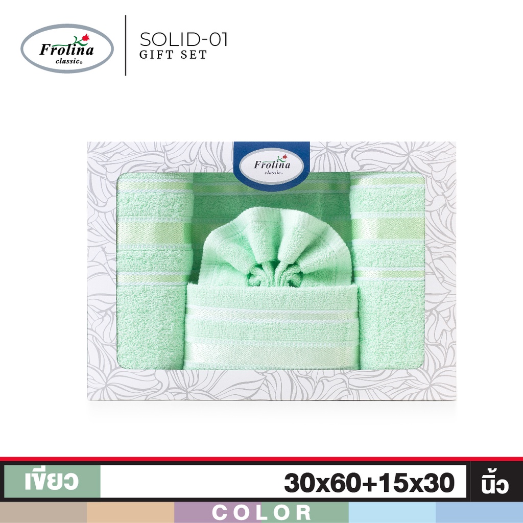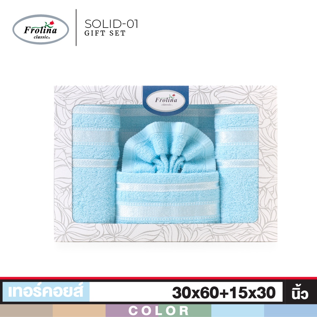 Frolina Gift Set เซ็ตของขวัญสุดคุ้ม ผ้าขนหนูเช็ดต ัวและเช็ดผม ขนาด 30x60 + 15x30 นิ้ว ดีไซน์ Solid01