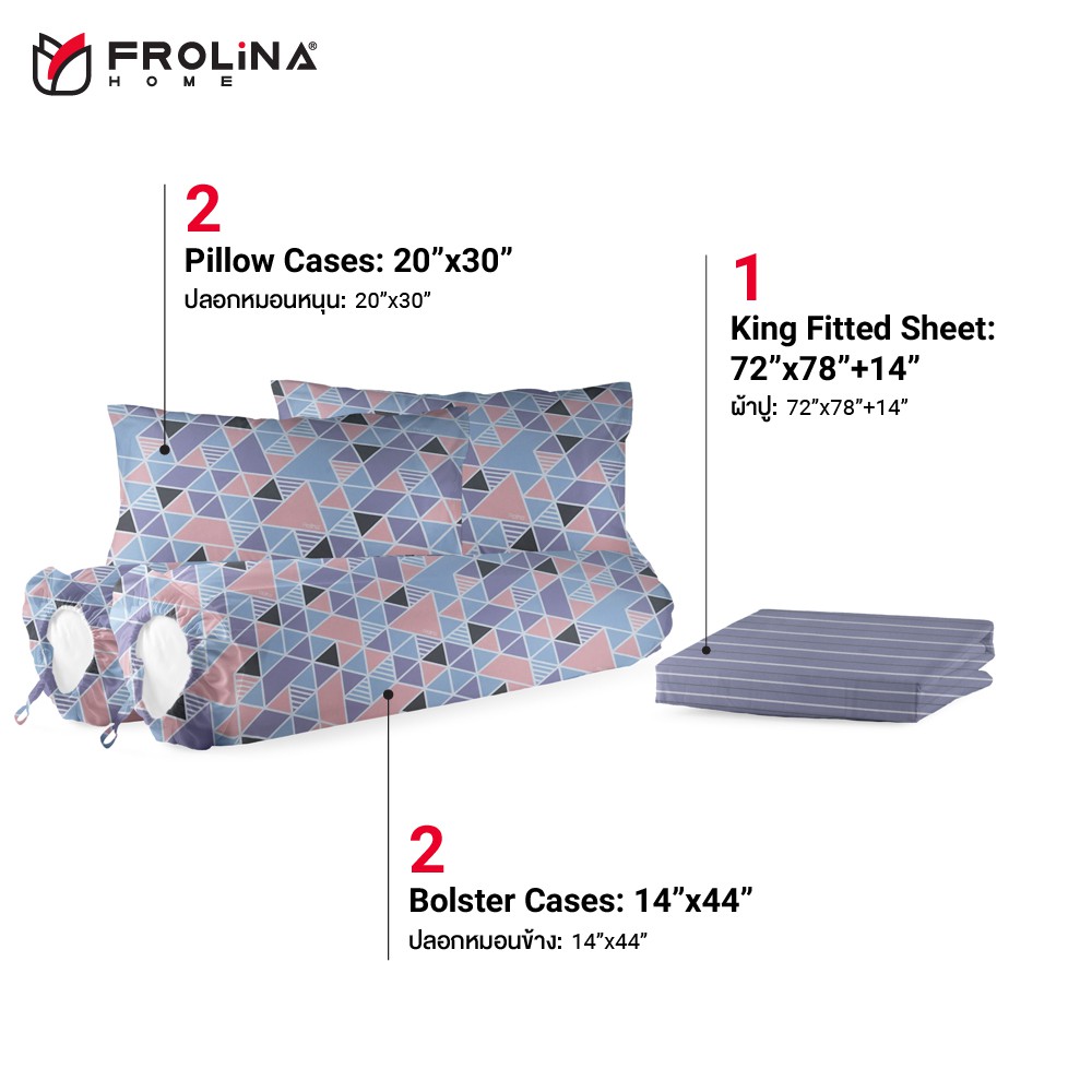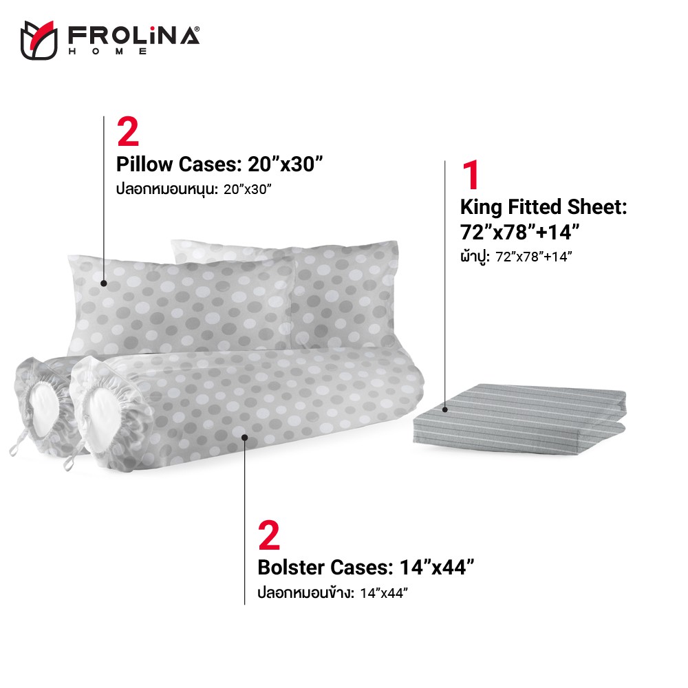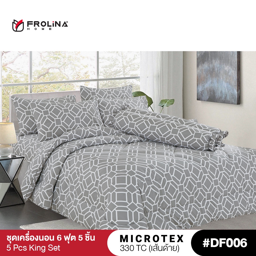 Frolina Microtex ชุดผ้าปูที่นอน ผ้าปูที่นอน 6 ฟุต King 5 ชิ้น (ไม่มีผ้านวม) 330 เส้นด้าย - Design