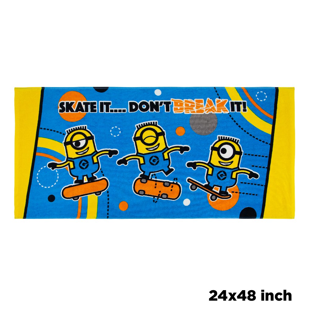 Frolina ผ้าขนหนูเช็ดตัวพิมพ์ลายลิขสิทธิ์ Minions ขนาด 24x48 นิ้ว ลาย Skate it!