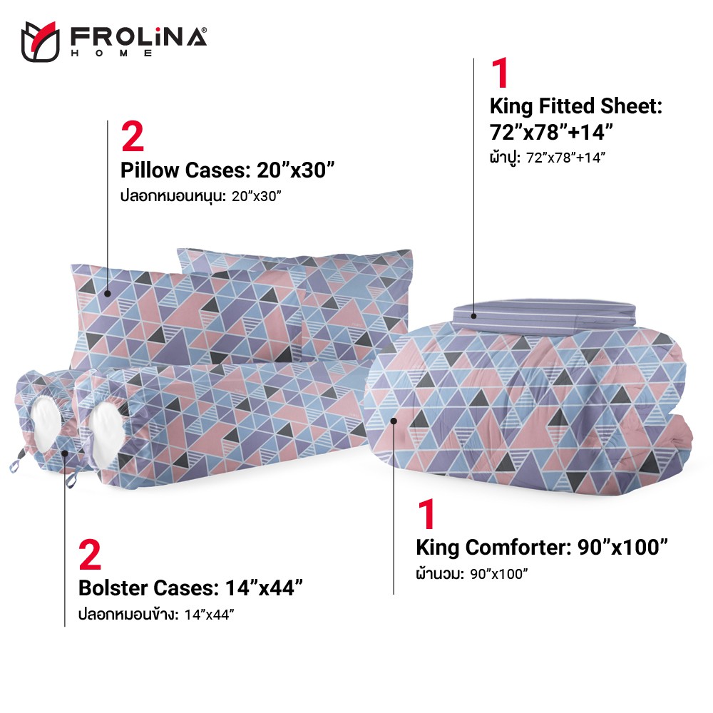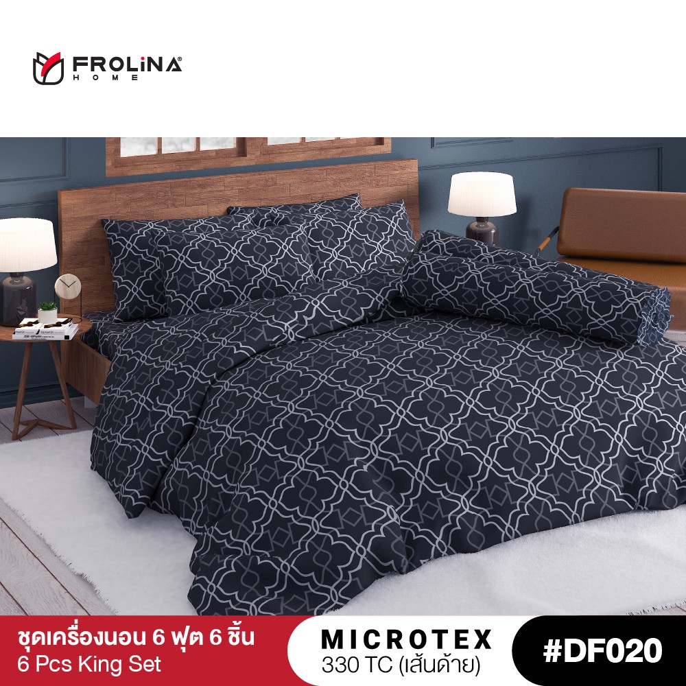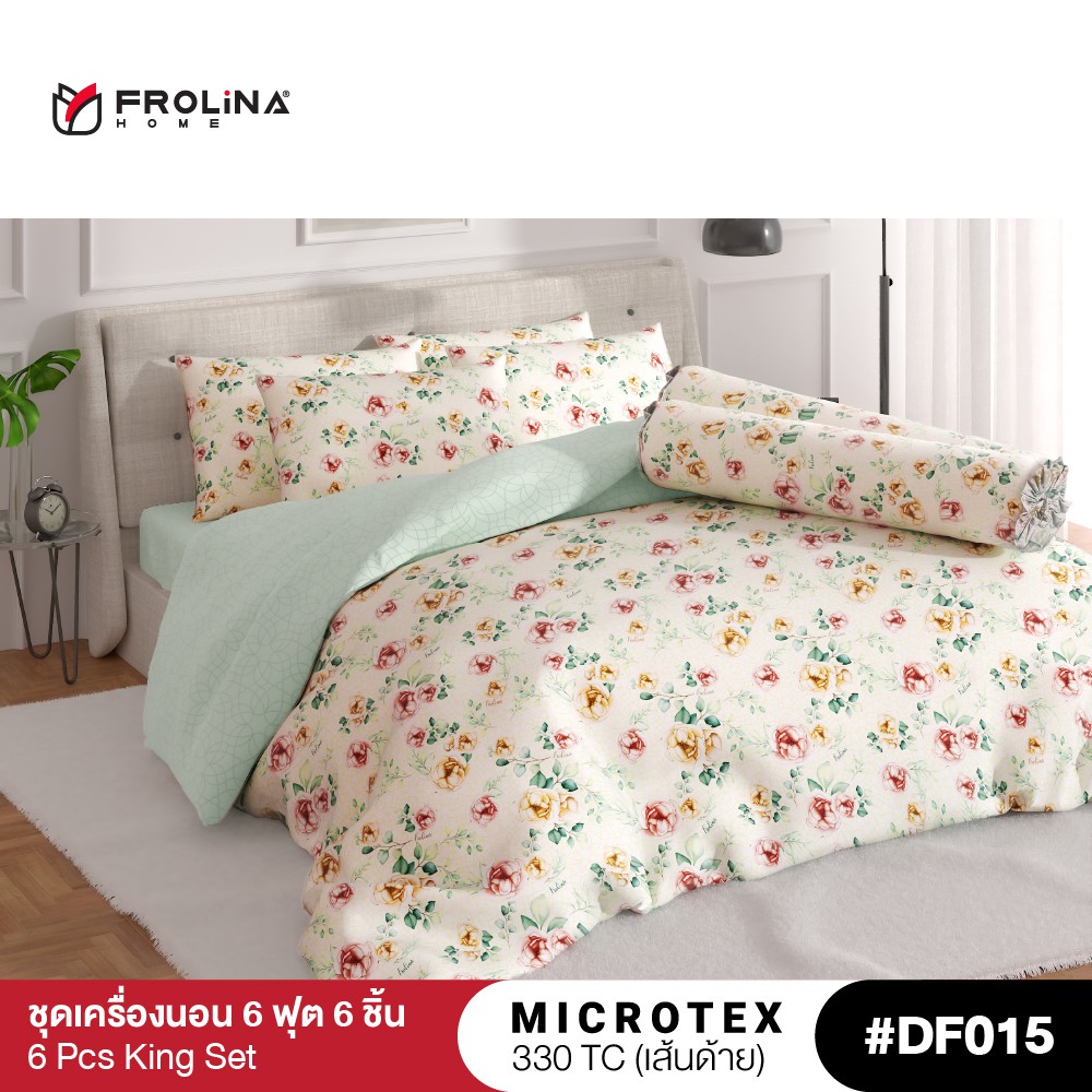 Frolina Microtex ชุดผ้าปูที่นอน ผ้าปูที่นอน 6 ฟุต King 6 ชิ้น (ชุดผ้าปู+ผ้านวม) 330 เส้นด้าย - Design