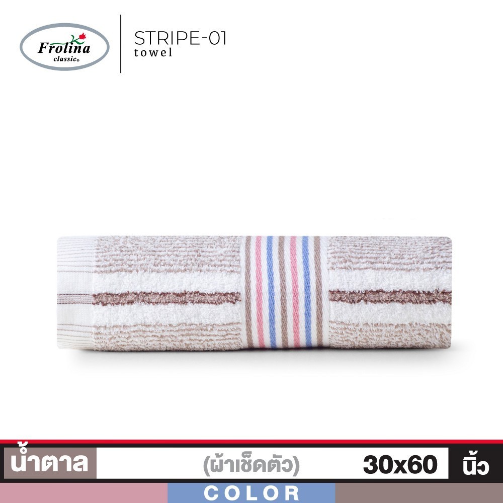 Frolina ผ้าขนหนูเช็ดตัว ผลิตจากใยฝ้ายธรรมชาติ ขนาดใหญ่ 30x60 นิ้ว ดีไซน์ Stripe01