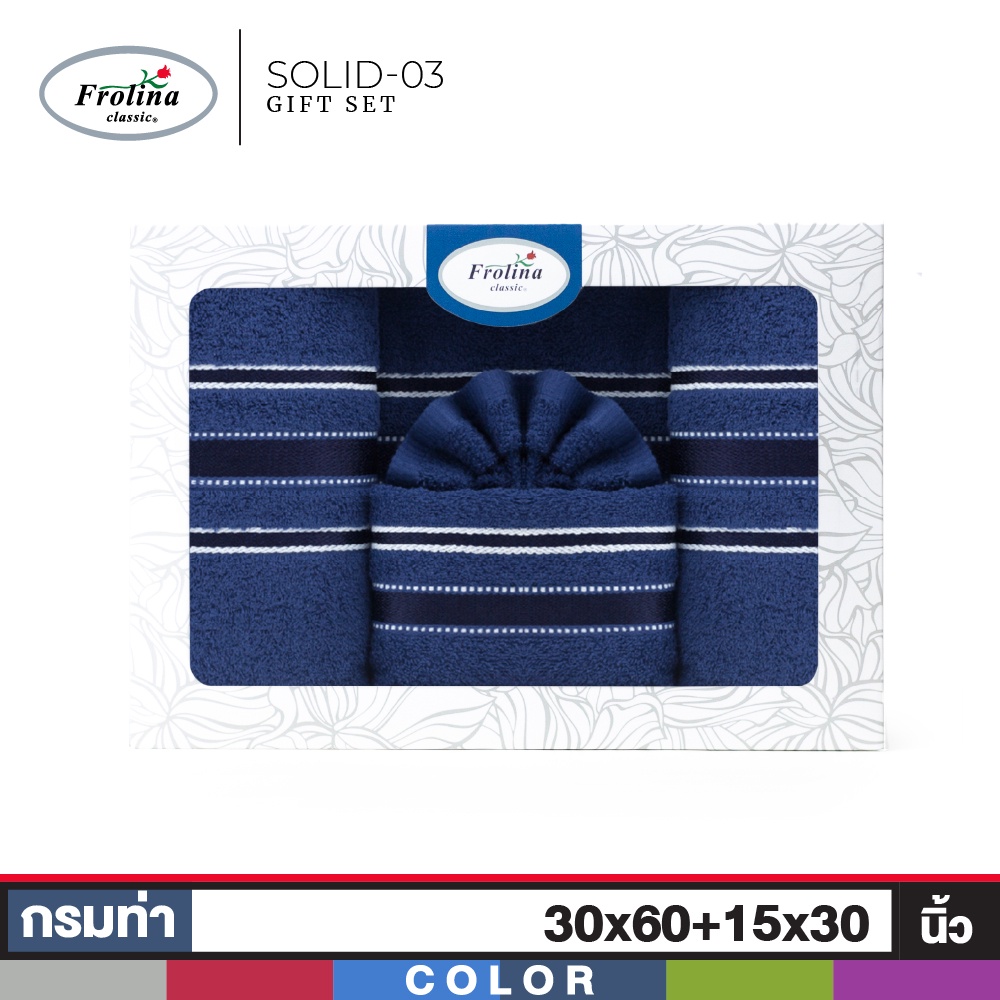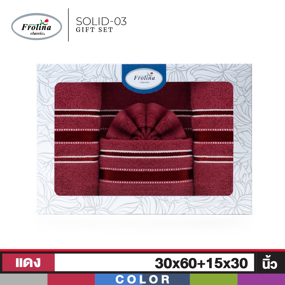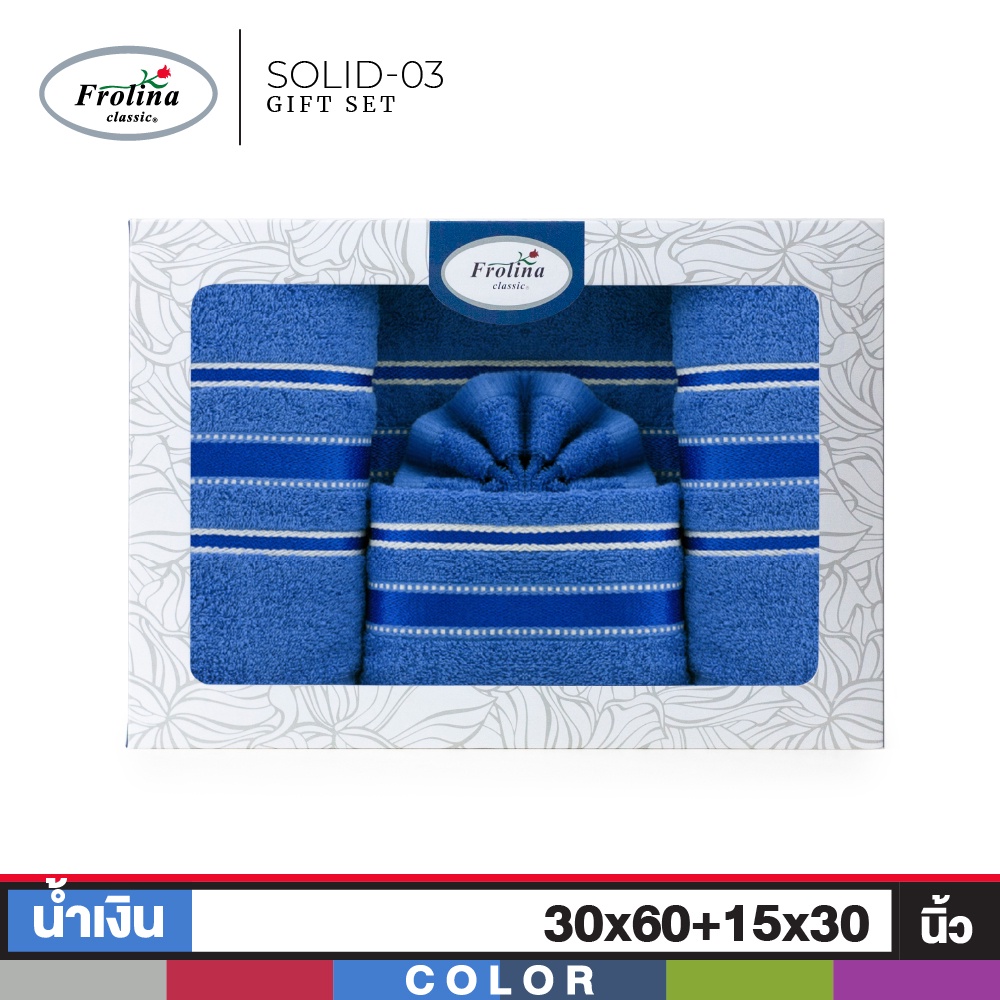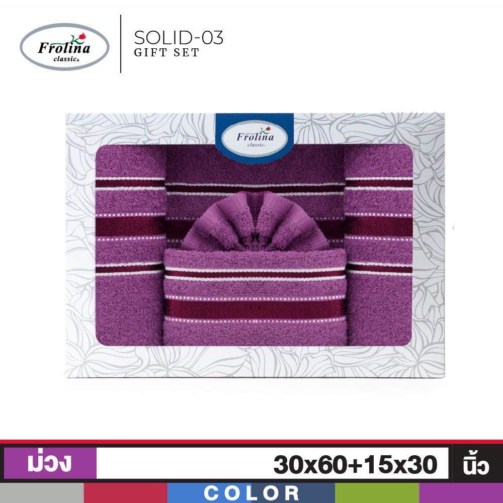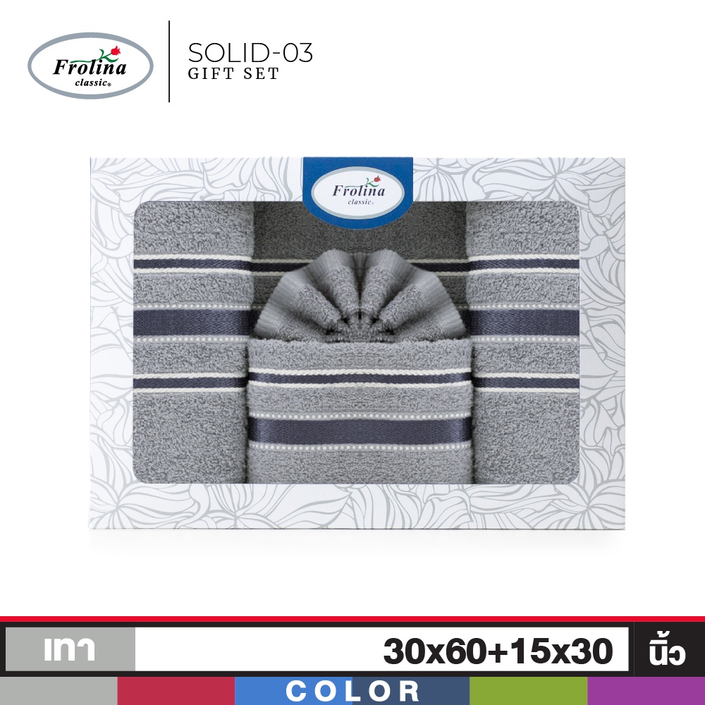Frolina Gift Set เซ็ตของขวัญสุดคุ้ม เซ็ตผ้าขนหนู ผ้าขนหนูเช็ดตัวและผ้าเช็ดผม ขนาด30x60และ15x30นิ้ว ดีไซน์ Solid03
