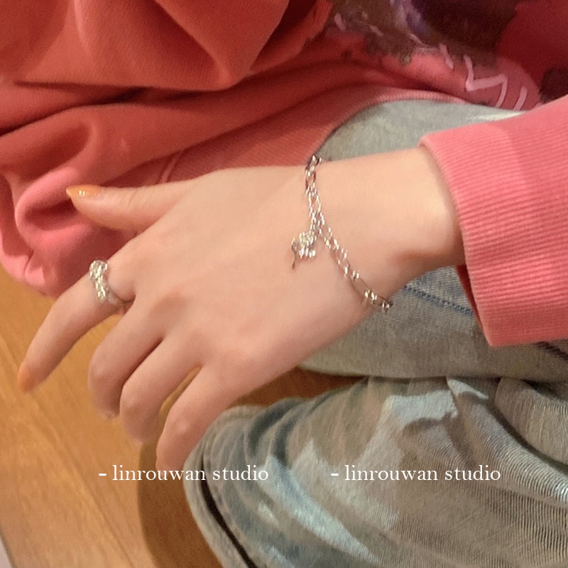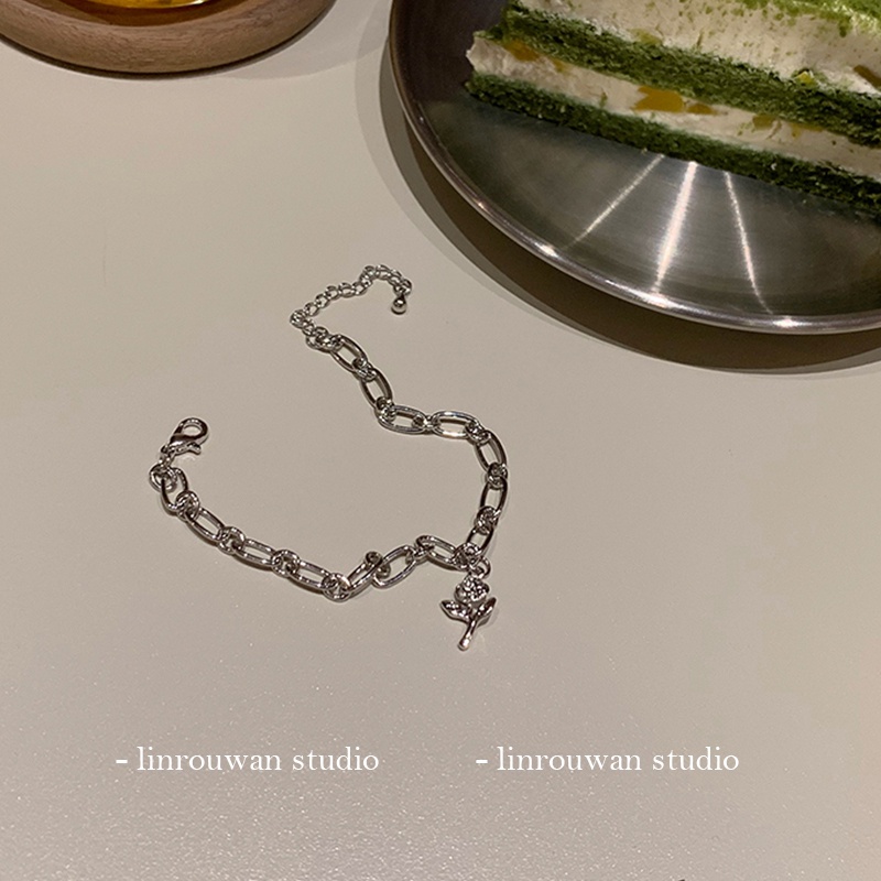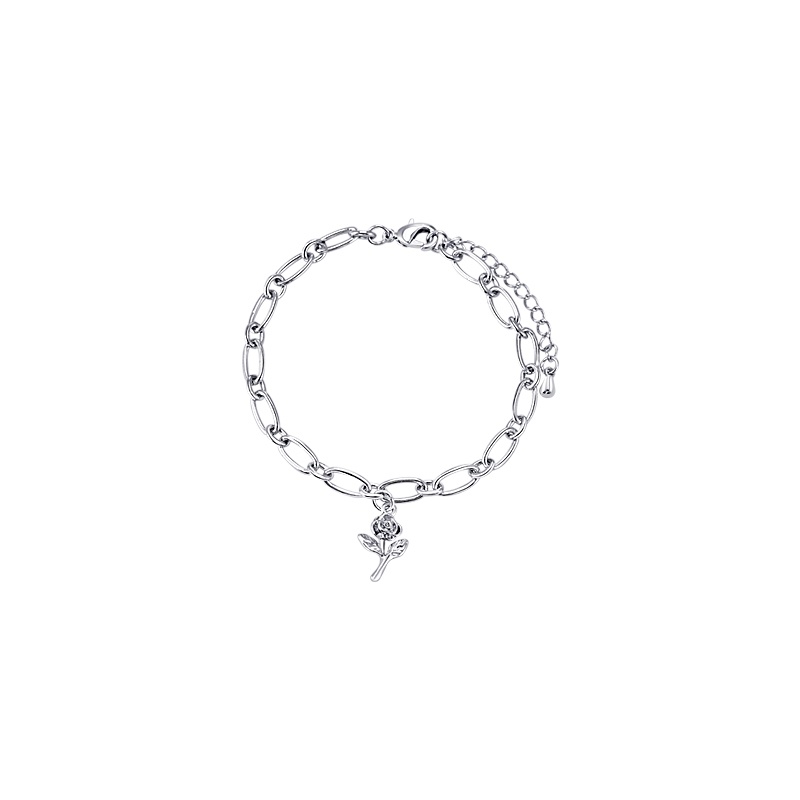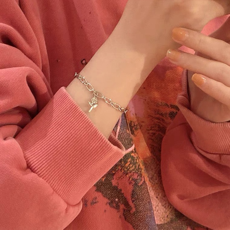 สร้อยข้อมือเงิน จี้ดอกกุหลาบ เรียบง่าย เครื่องประดับแฟชั่น