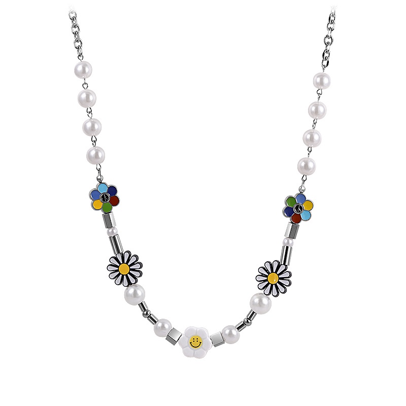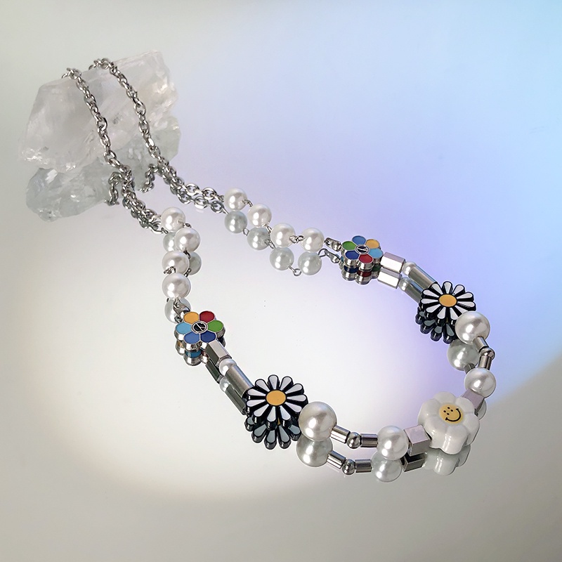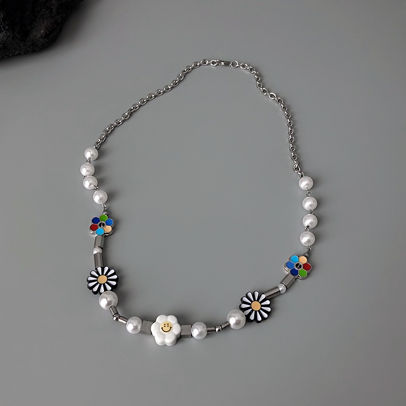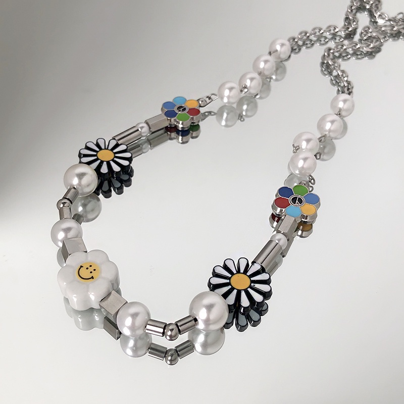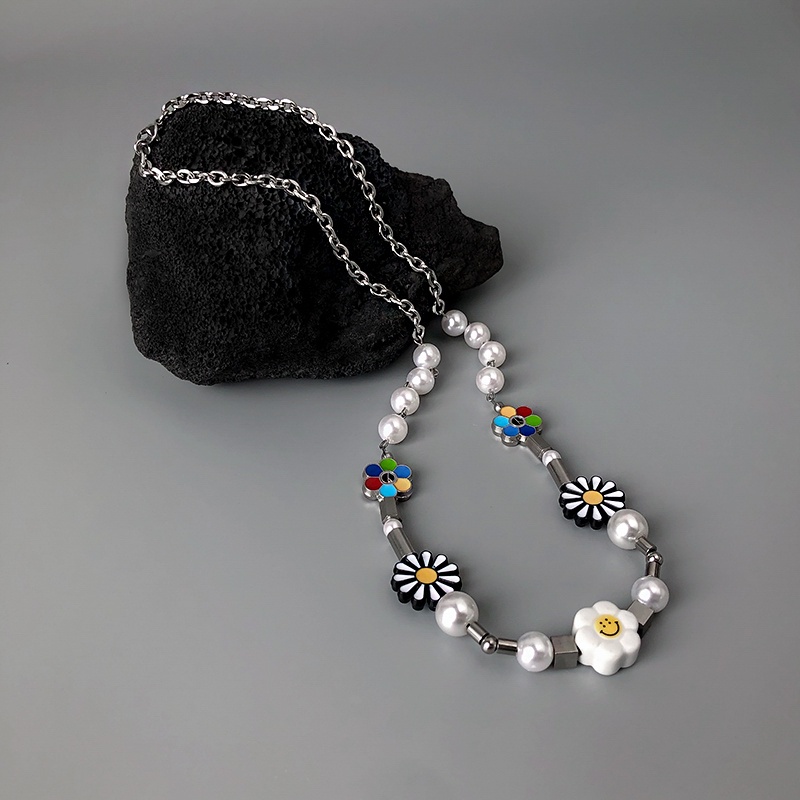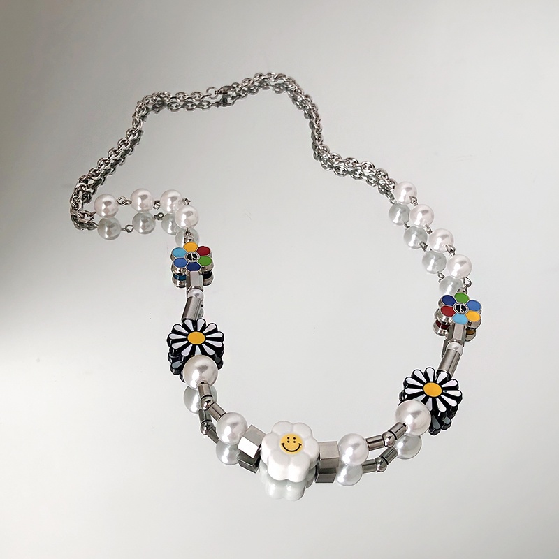 สร้อยคอโซ่ ลายดอกเดซี่ หน้ายิ้ม สไตล์ฮิปฮอป สําหรับผู้หญิงและผู้ชาย