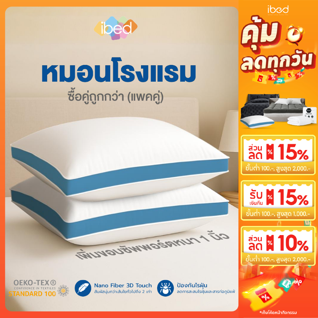 [ซื้อคู่ถูกกว่า] ibed หมอนหนุนโรงแรม NANO FIBER ความนุ่มสบายระดับ 5 ดาว
