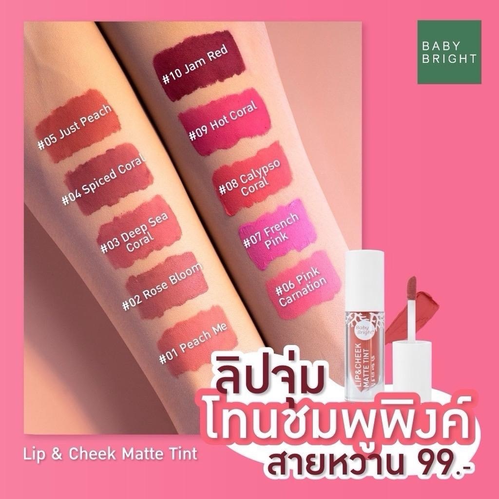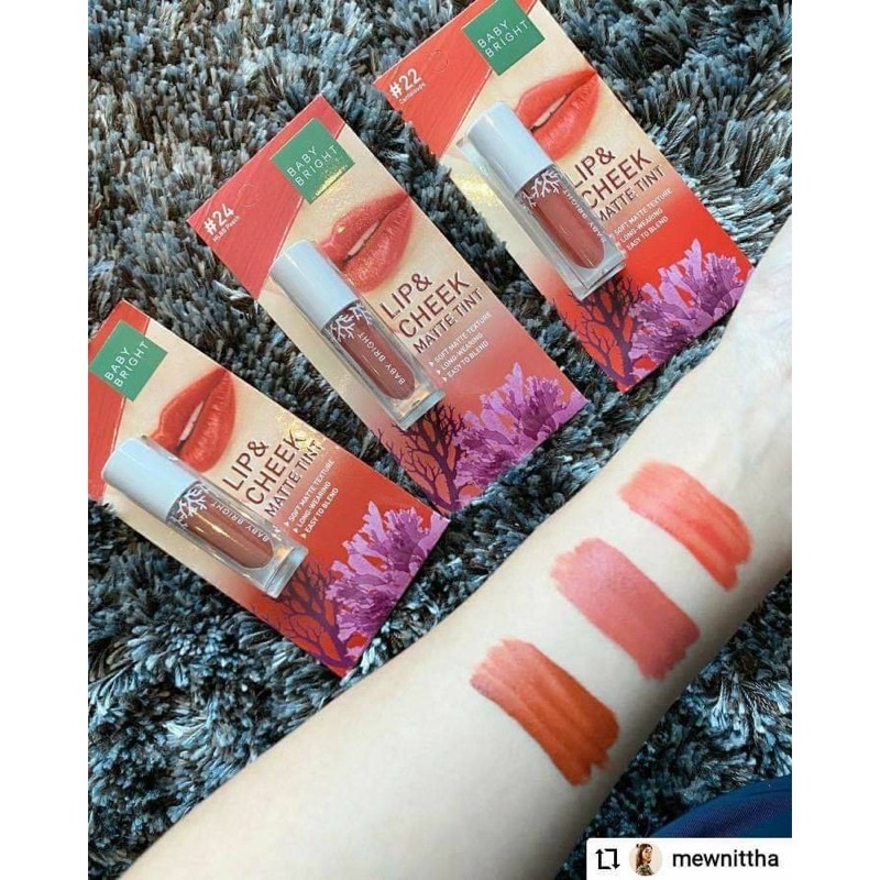 Baby Bright Lip & Cheek Matte Tint (Mew) ลิปเบบี้ไบร์ท ลิปมิว นิษฐา ลิปทิ้น ทิ้นท์ เนื้อแมท ใช้ได้ทั้งปากและแก้ม ลิปแมท