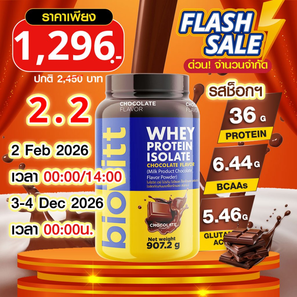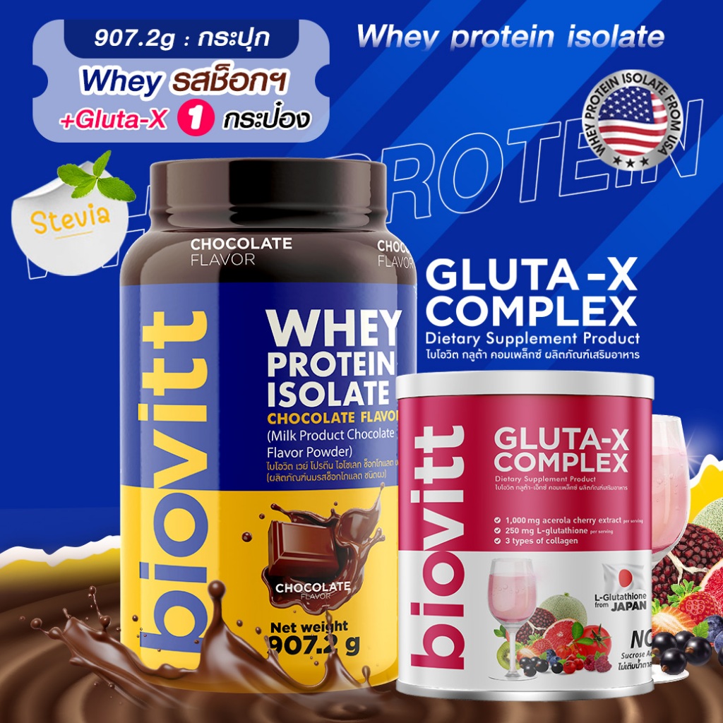 (เซ็ตช็อก) ปรับสูตรใหม่ biovitt Whey Protein Isolate เวย์โปรตีน ไอโซเลท รสช็อกโกแลต907.2 กรัม