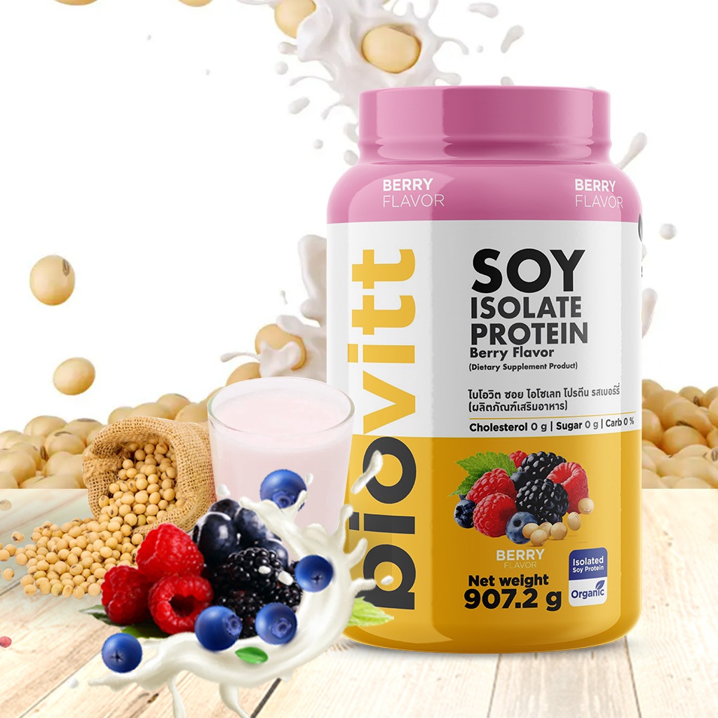 [เซ็ตซอยเบอร์รี่] biovitt Soy Isolate Protein Berry ซอยโปรตีน ไอโซเลท รสเบอร์รี่ โปรตีนสูง | 907.2g.