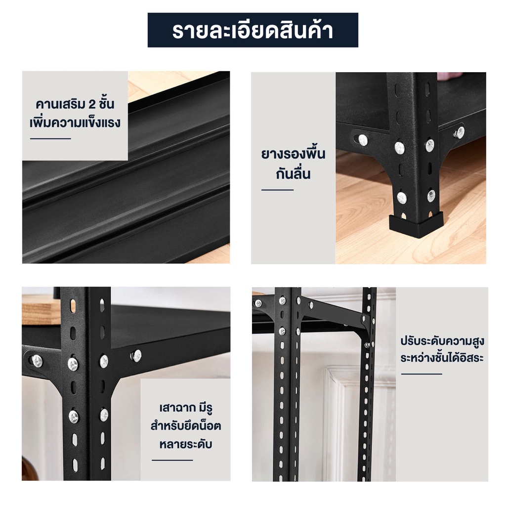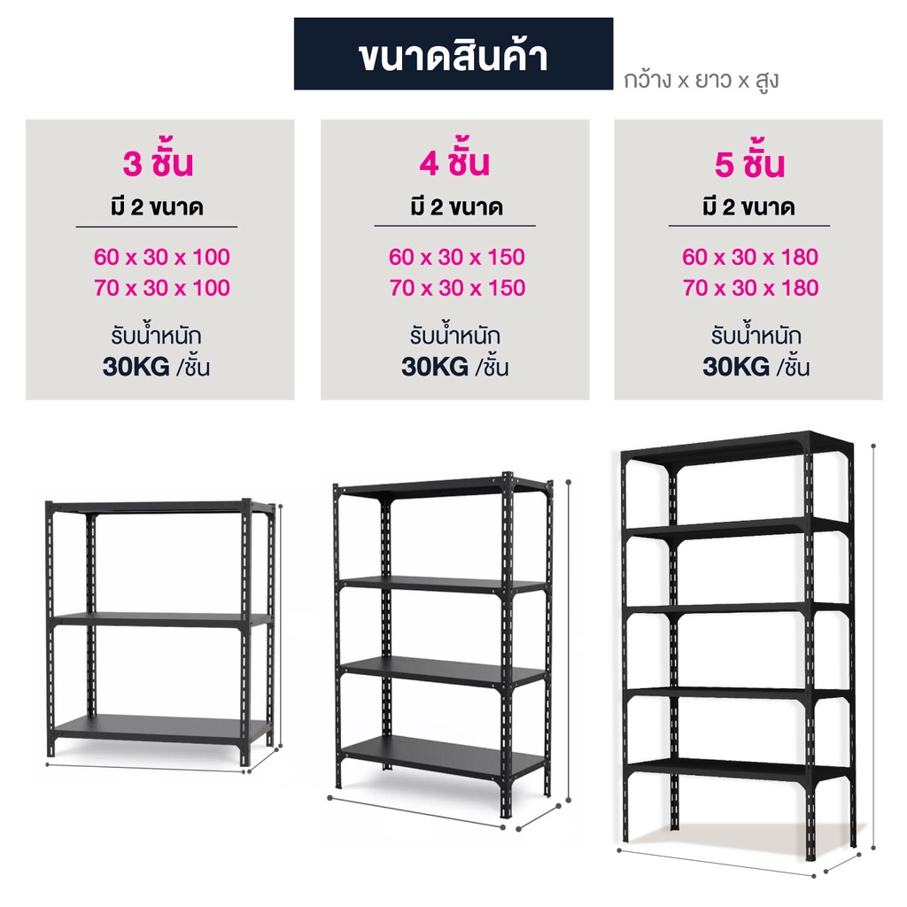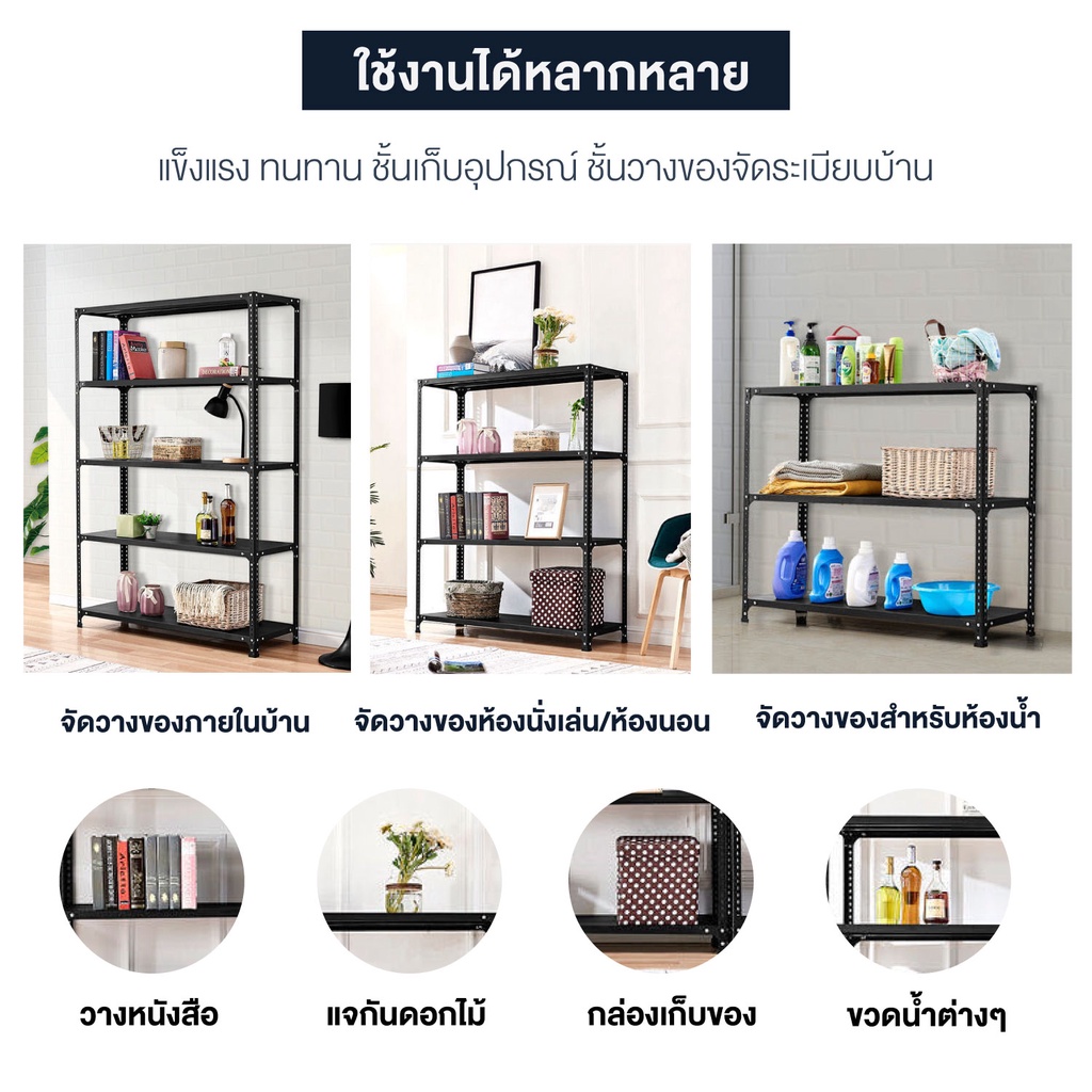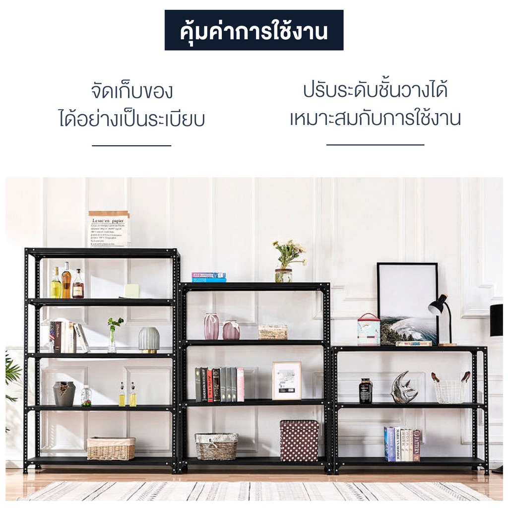 shelf ชั้นวางของ เหล็กทั้งชุด สีดำ 3.4.5ชั้น ขนาด 100-180cm เก็บของ ใช้กับโกดัง ห้องครัว ชั้นเก็บของ