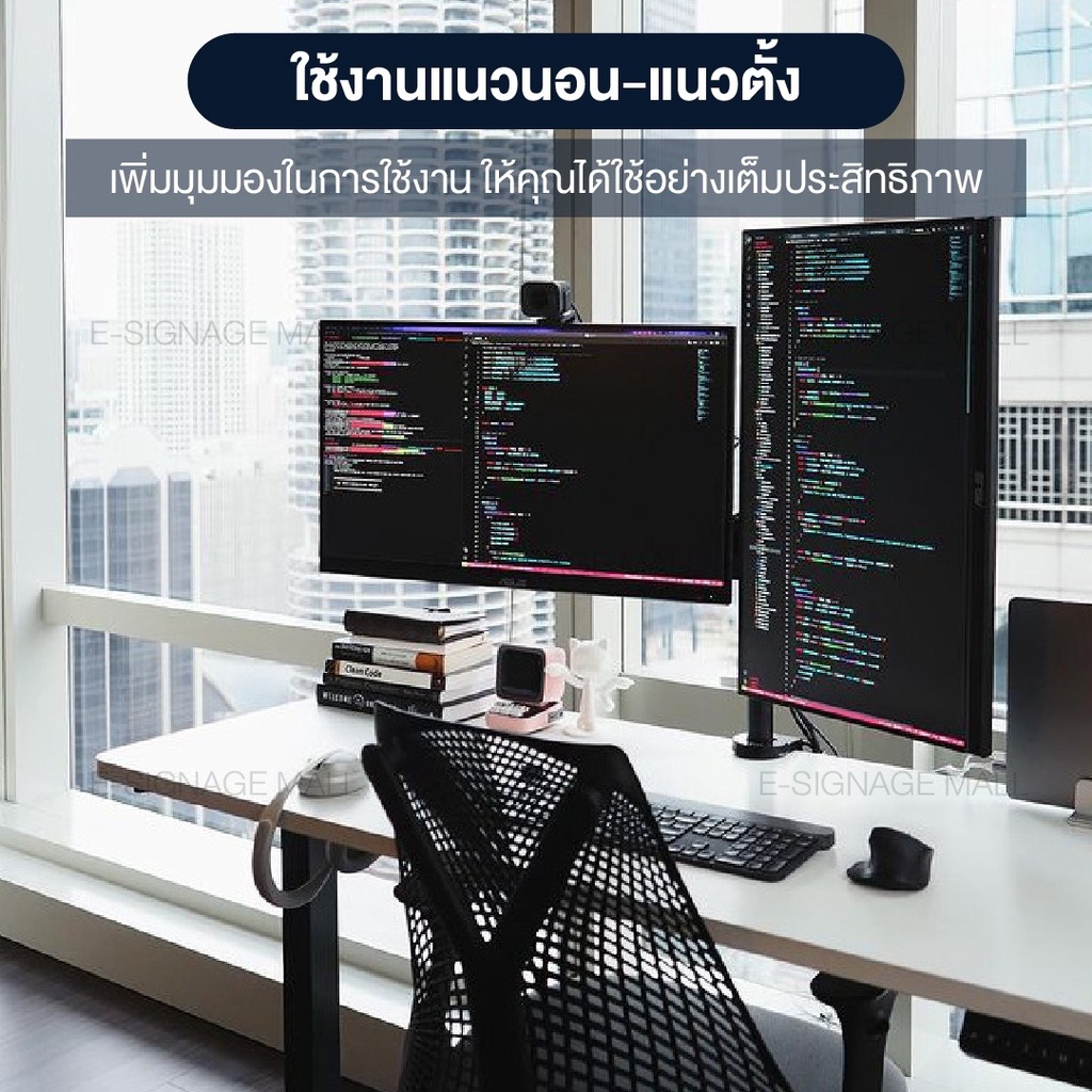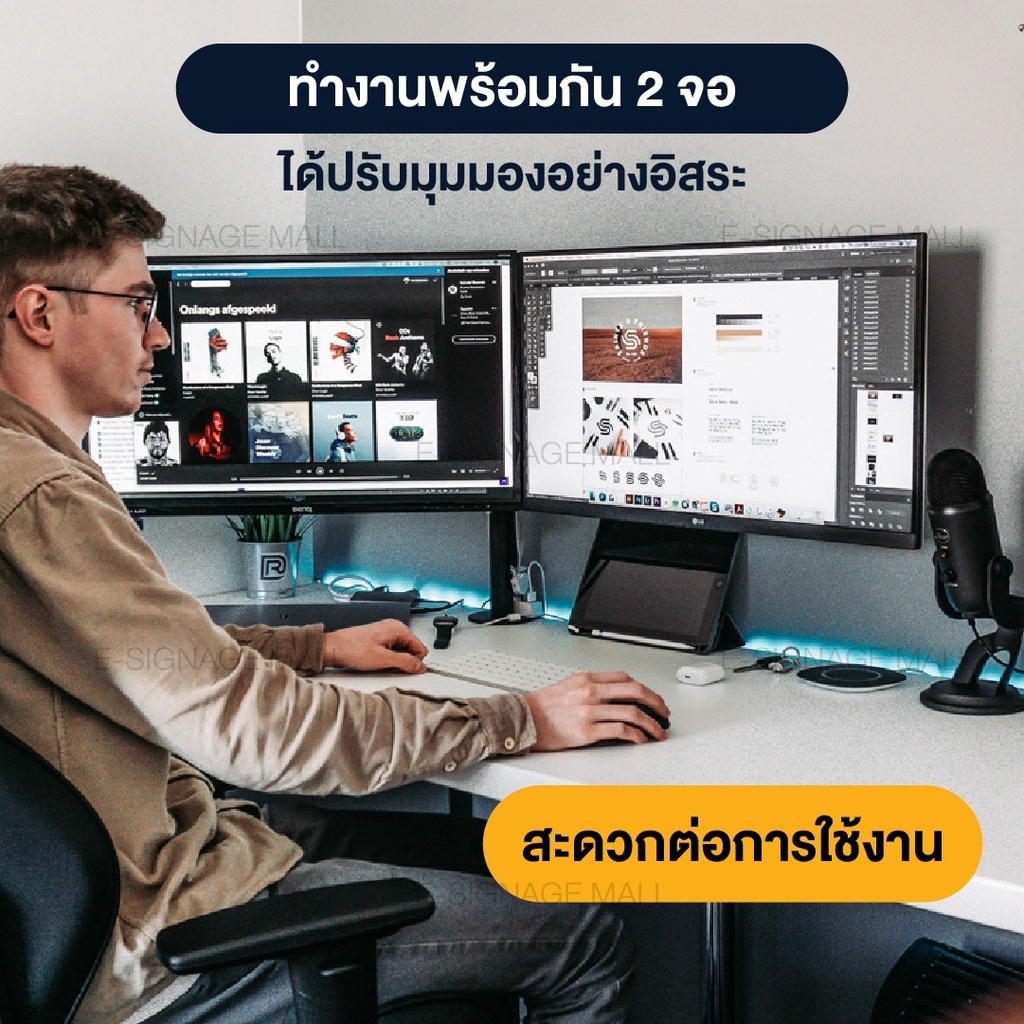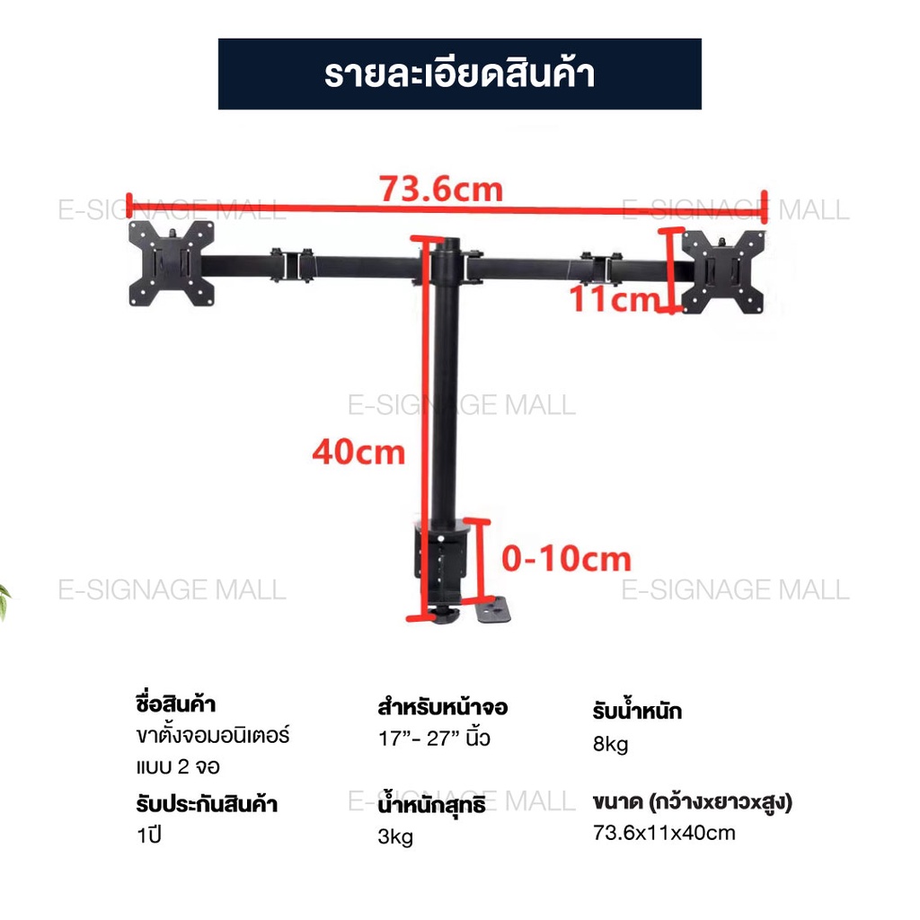 ขาตั้งจอคอม 2 จอ ขนาด 17”-27” ขายึดจอ ขาแขวนจอ Monitor รับน้ำหนัก 8kg แข็งแรง ไม่ต้องเจาะรู ไม่เจาะผนังเพิ่มเติม