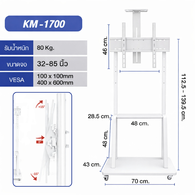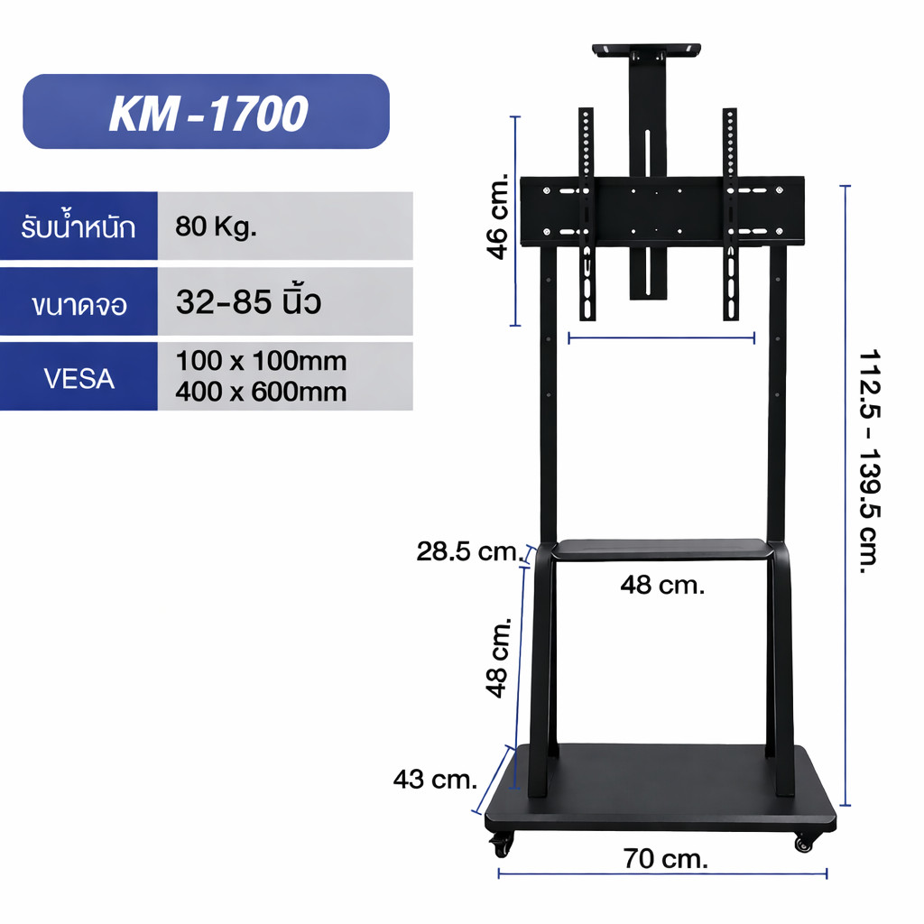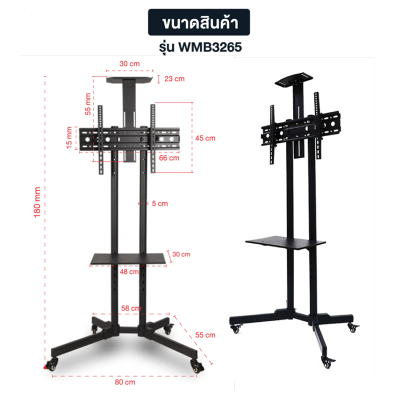 ขาตั้งทีวี สูง180cm ขาแขวนทีวี ตั้งพื้น ขนาด 32-75 นิ้ว ปรับ ก้ม เงยได้ มีล้อ เคลื่อนย้ายได้ แข็งแรง เหล็กหนา
