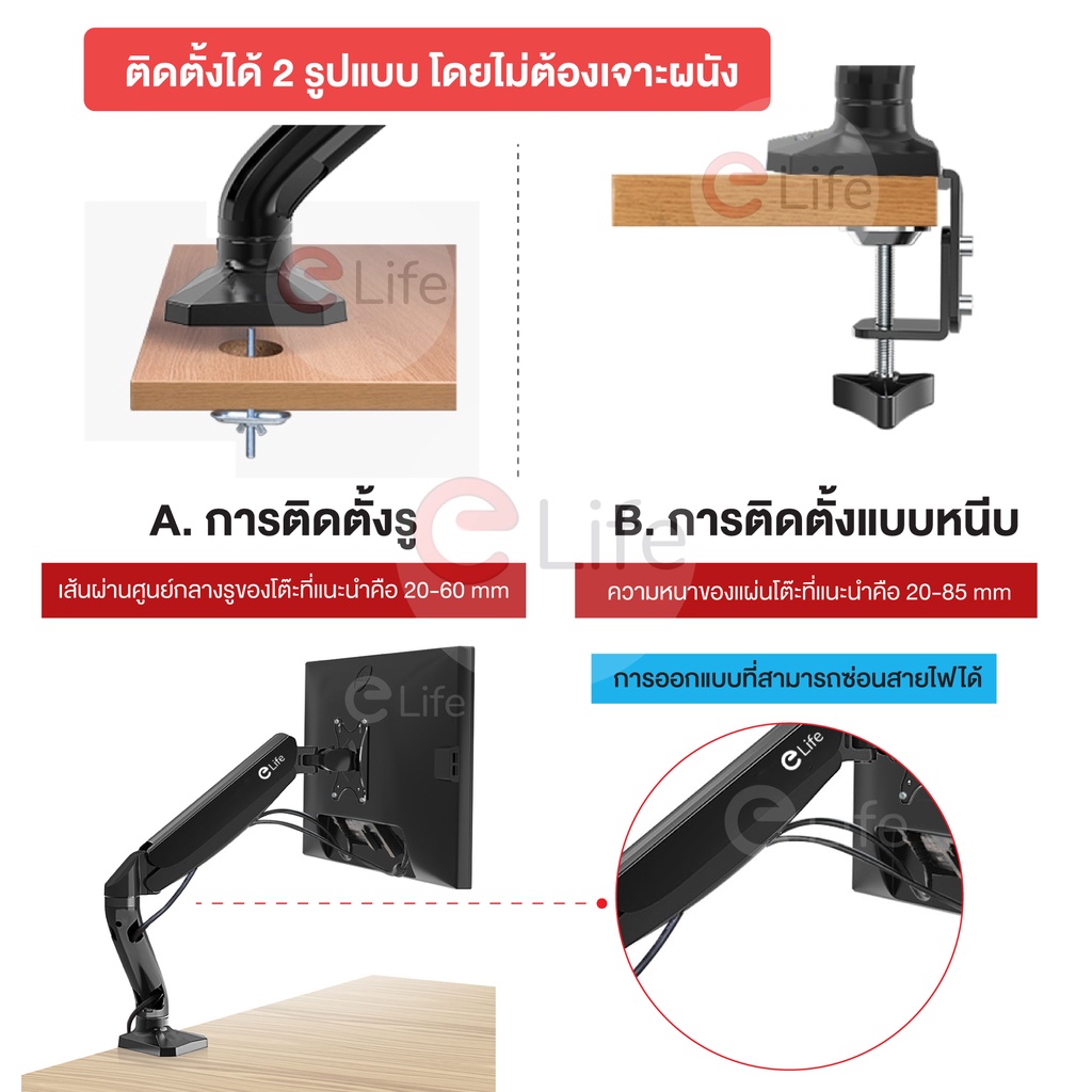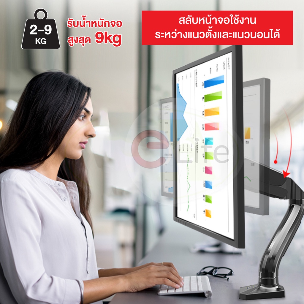 ขาตั้งจ อคอม elife ของแท้ Gas Spring monitor stand 17นิ้ว-32นิ้ว ขาจับจอคอม รองรับสูงสุด 9kg ขาจับจอ