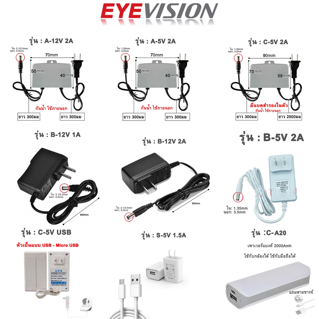 EYEVISION อะเดปเตอร์ 5v 12v 1A 1.5A 2A มาตรฐานUL หม้อแปลง อะเดปเตอร์ ใช้กับกล้องวงจรปิด อะเดปเตอร์สำรองไฟ UPS 12v 2a