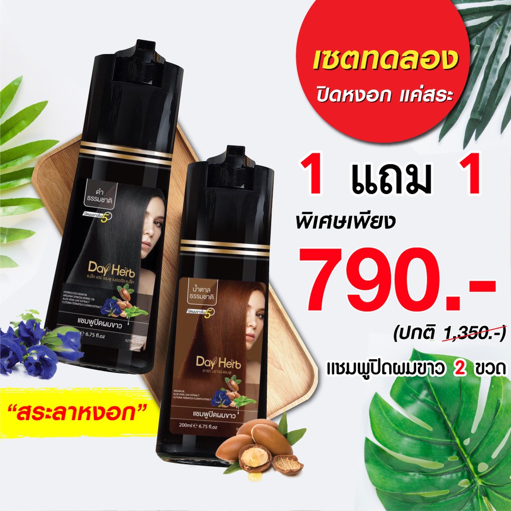1 แถม 1 DayHerb แชมพูปิดผมขาว สมุนไพรแท้ ปิดหงอก แก้ผมหงอก ใน 5 นาที