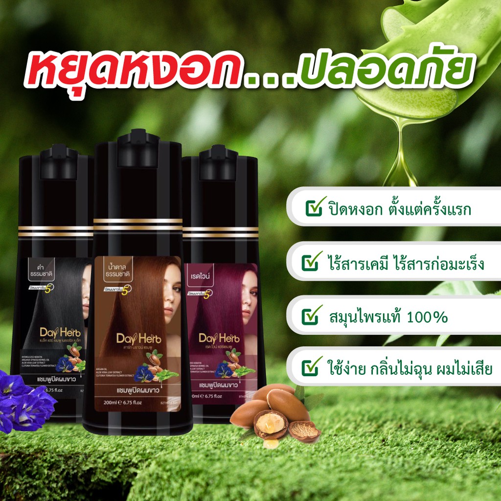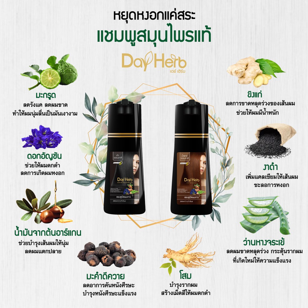 DayHerb แชมพูปิดผมขาว สมุนไพรแท้ ปิดหงอก ลดหงอก ผมดำใน 5 นาที